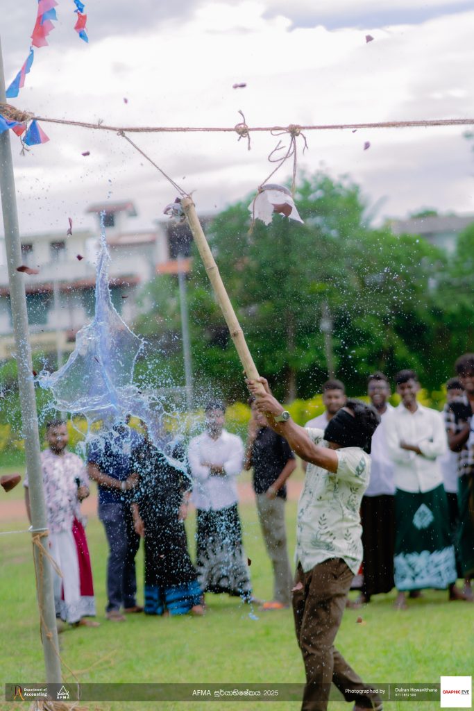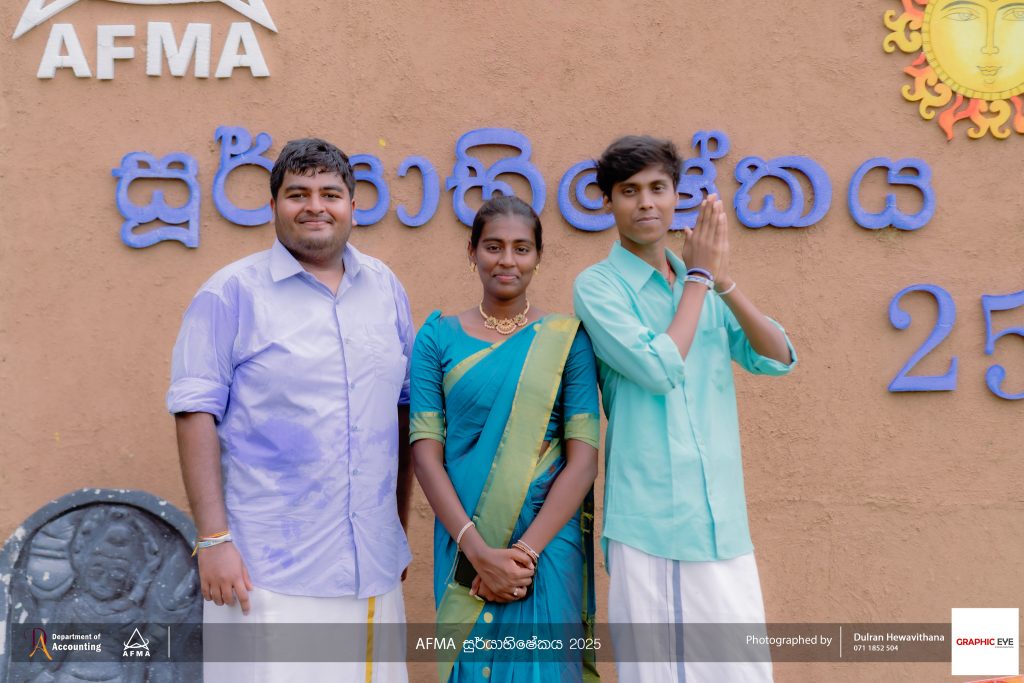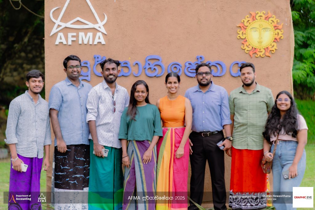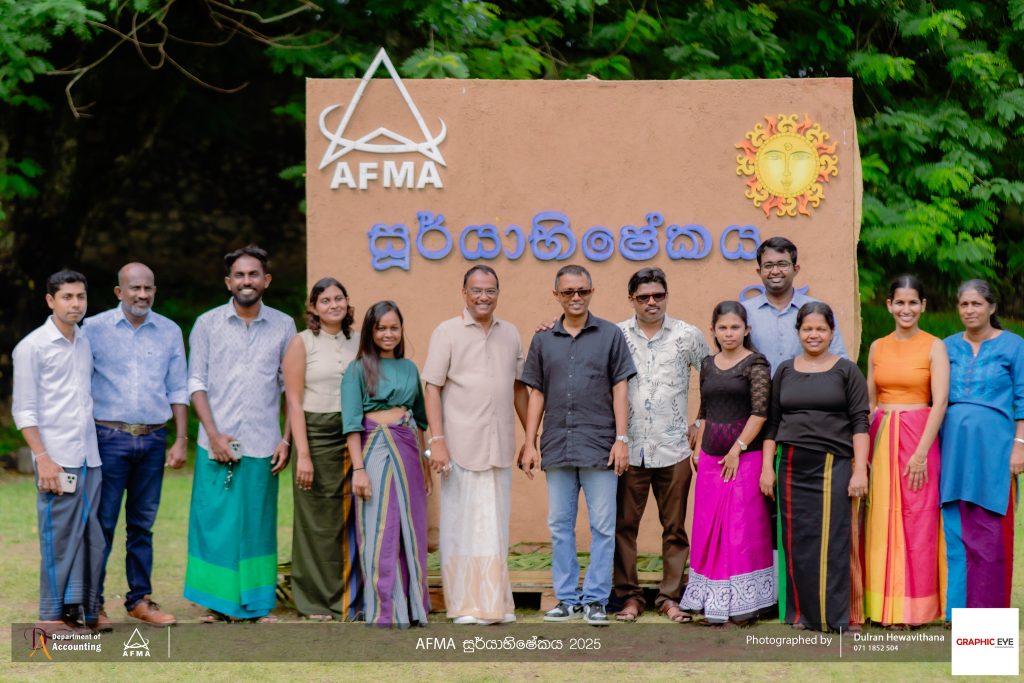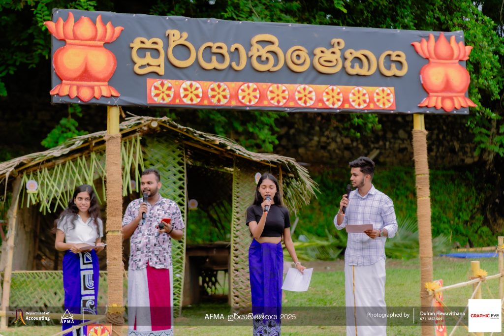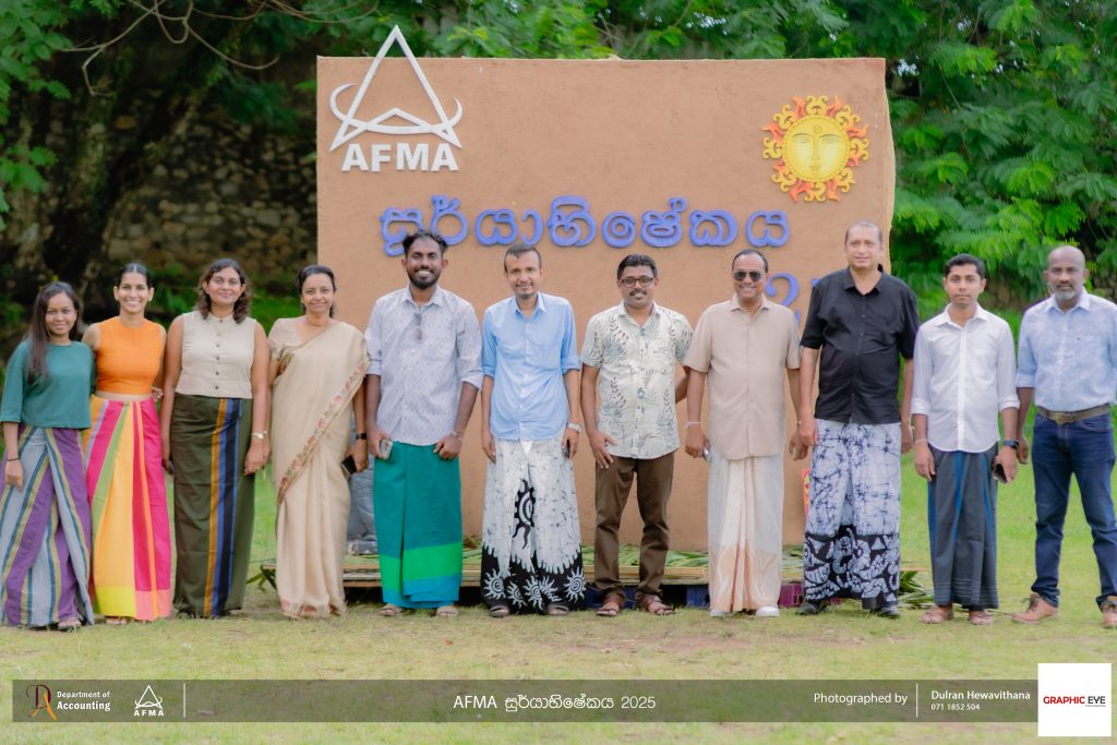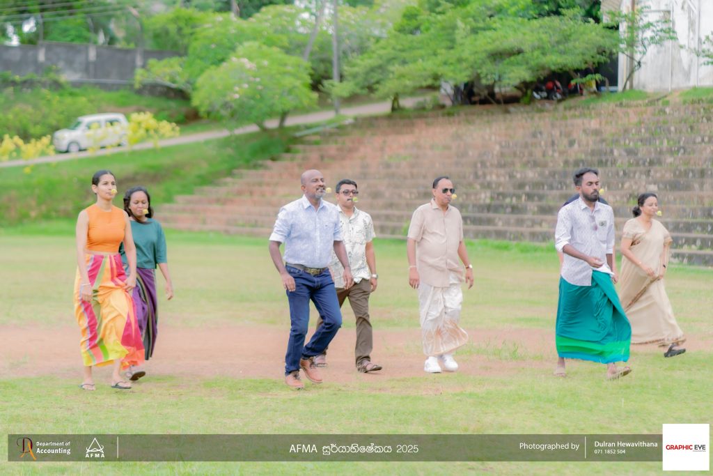 The Accounting and Financial Management Association (AFMA), the student body of the Department of Accounting, organised ‘AFMA Sooryabhishekaya 2025’ to celebrate the Sinhala and Tamil New Year on April 30th, 2025. The event was held at the university grounds and witnessed active participation from students, as well as academic and non-academic staff members of the department.