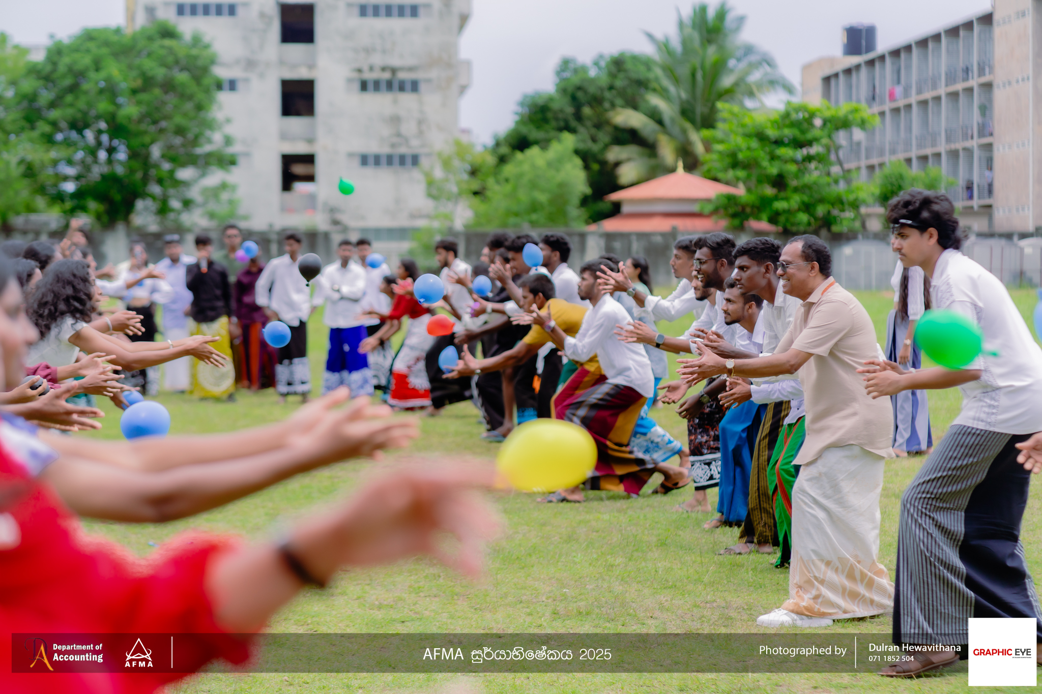The Accounting and Financial Management Association (AFMA), the student body of the Department of Accounting, organised ‘AFMA Sooryabhishekaya 2025’ to celebrate the Sinhala and Tamil New Year on April 30th, 2025. The event was held at the university grounds and witnessed active participation from students, as well as academic and non-academic staff members of the department.