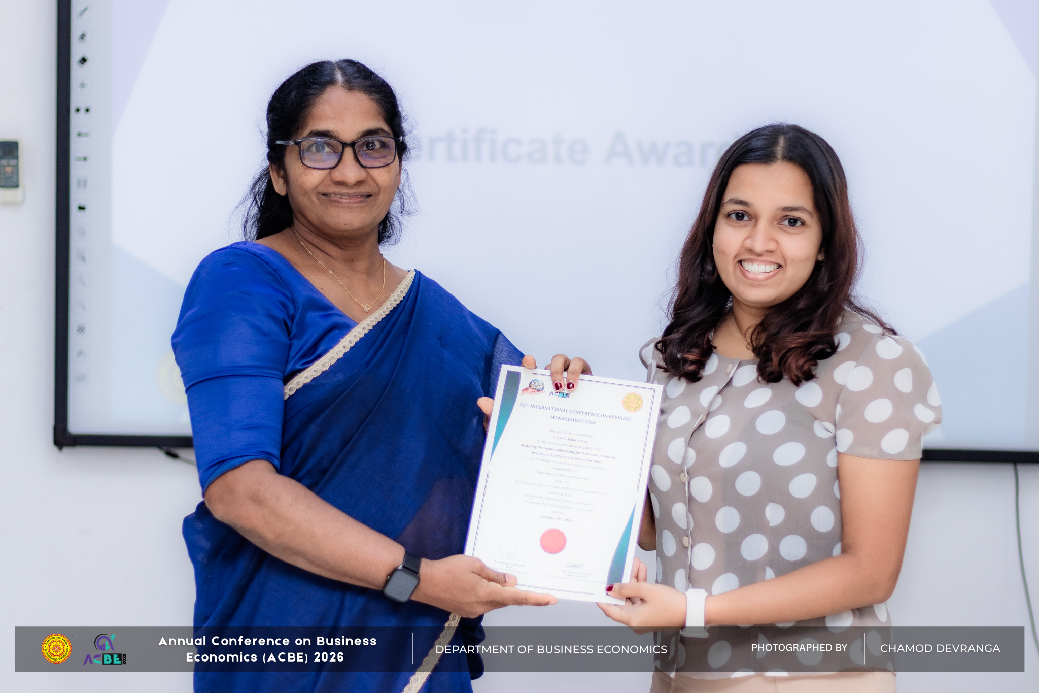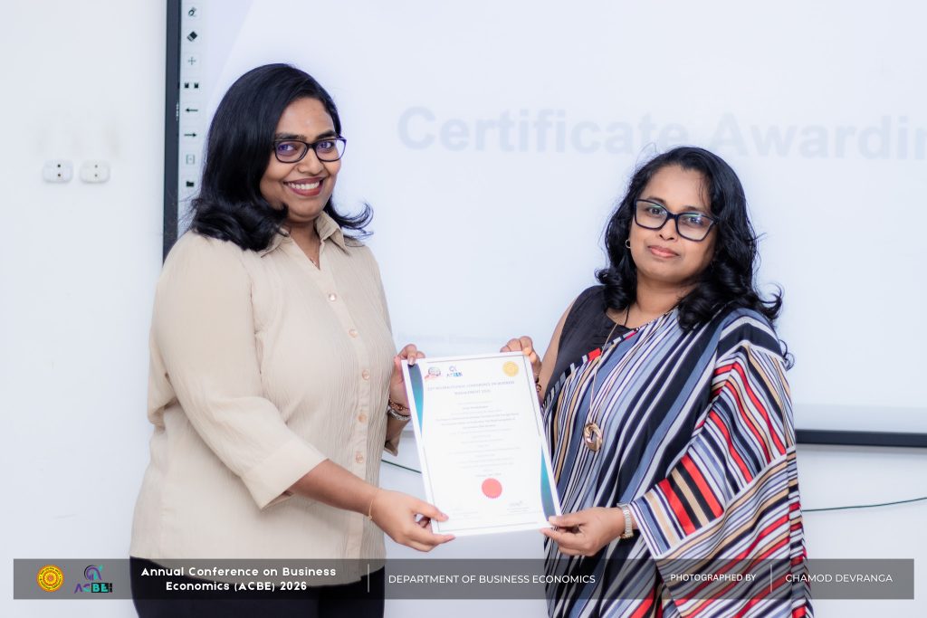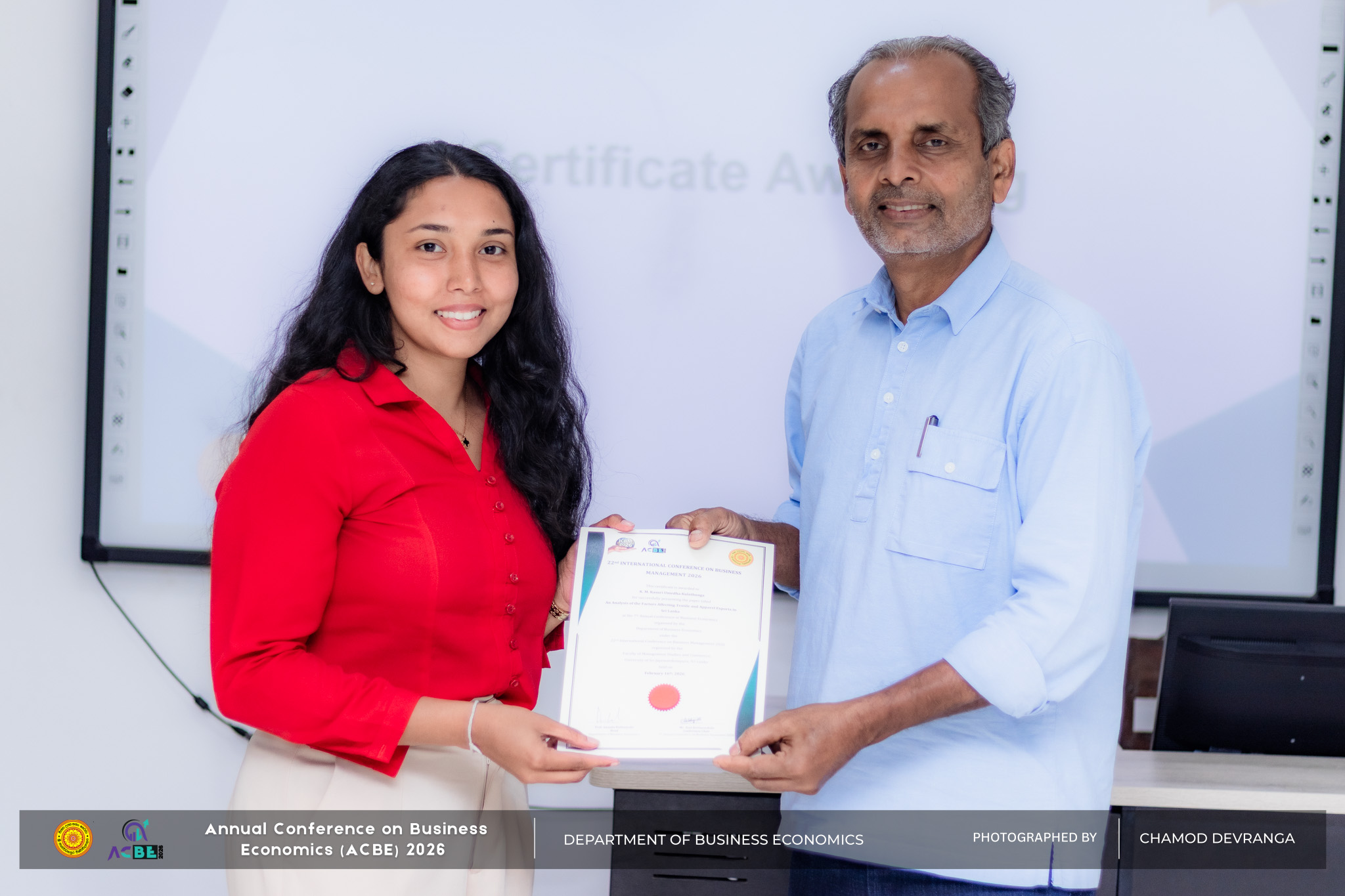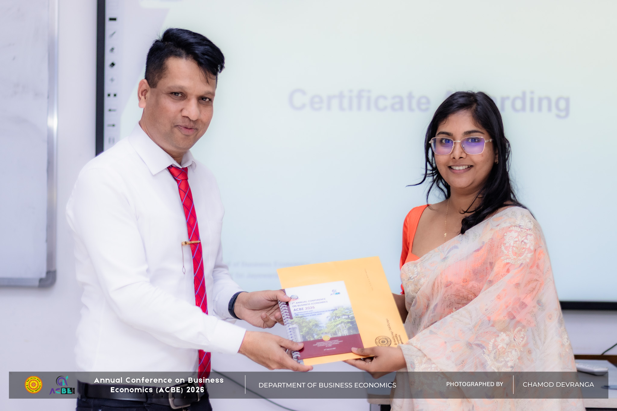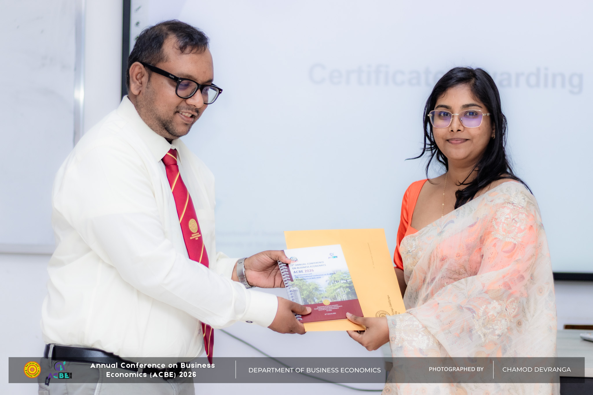 The Department of Business Economics successfully hosted the 7th Annual Conference on Business Economics (ACBE) 2026 on Monday, 16 February 2026, as part of the 22nd International Conference on Business Management (ICBM), Faculty of Management Studies and Commerce.
