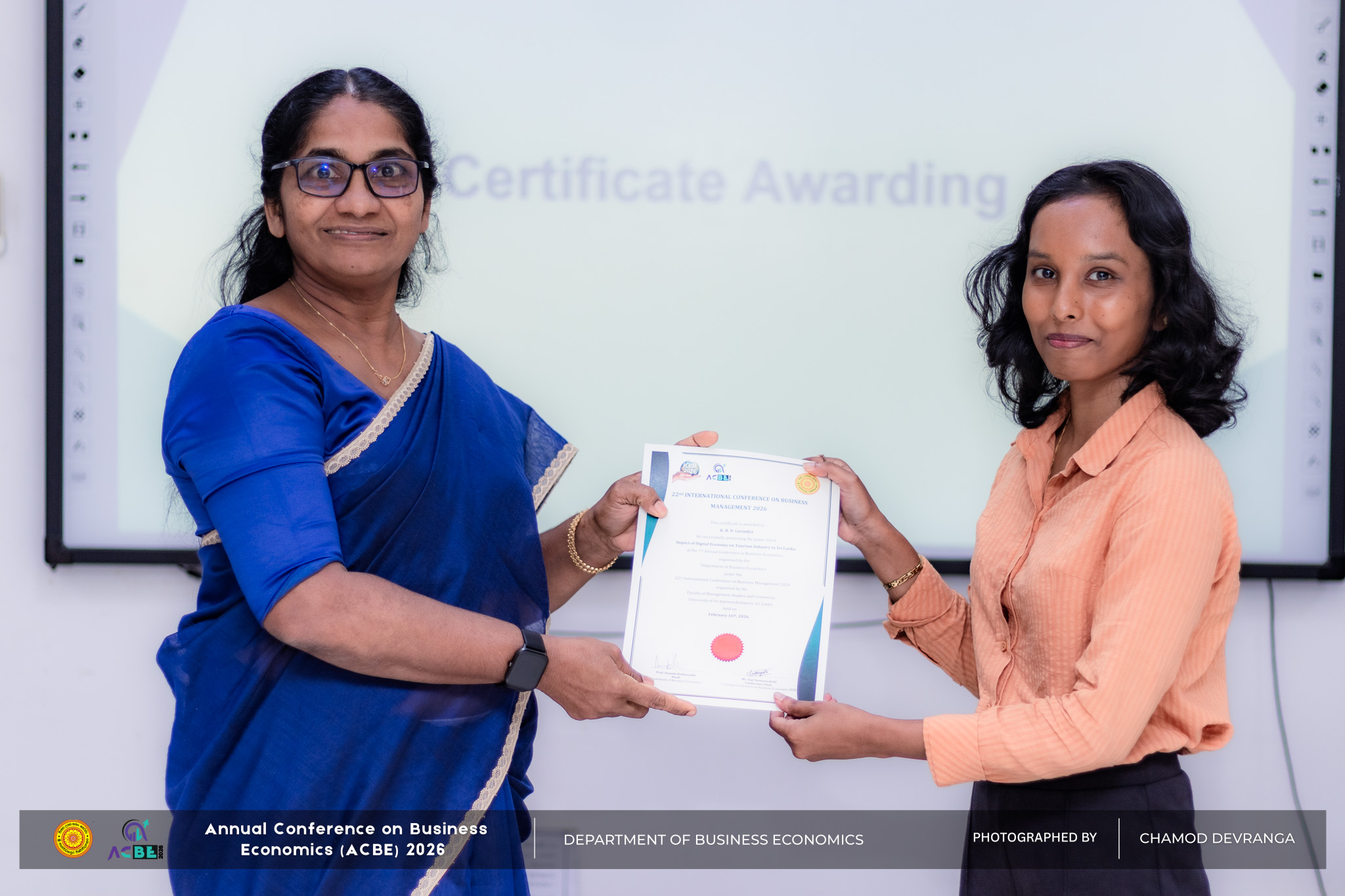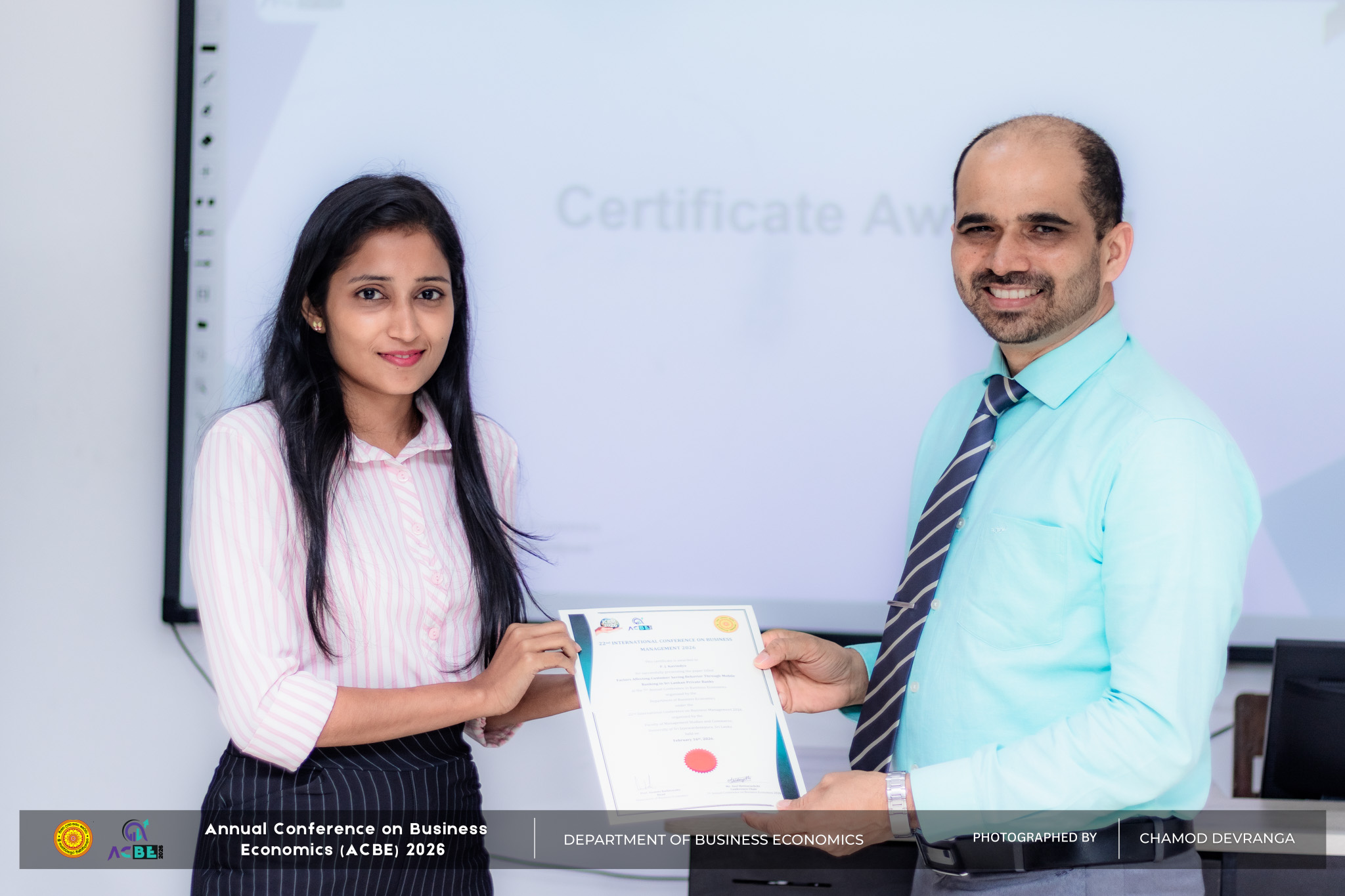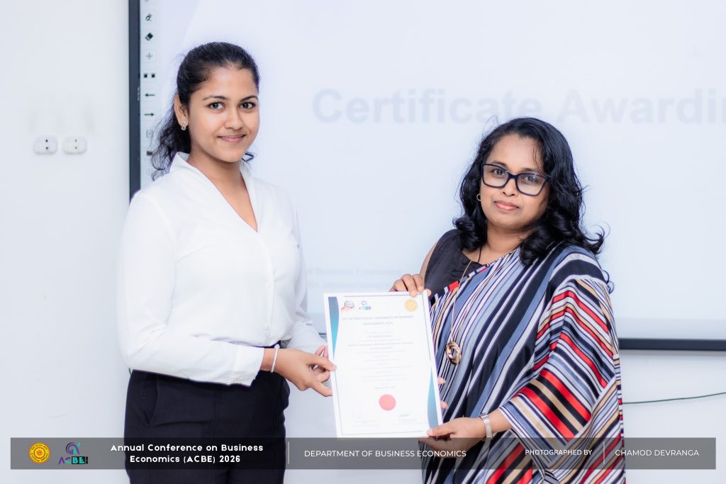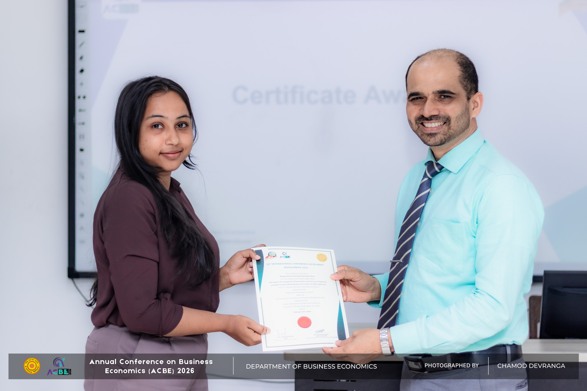The Department of Business Economics successfully hosted the 7th Annual Conference on Business Economics (ACBE) 2026 on Monday, 16 February 2026, as part of the 22nd International Conference on Business Management (ICBM), Faculty of Management Studies and Commerce.
