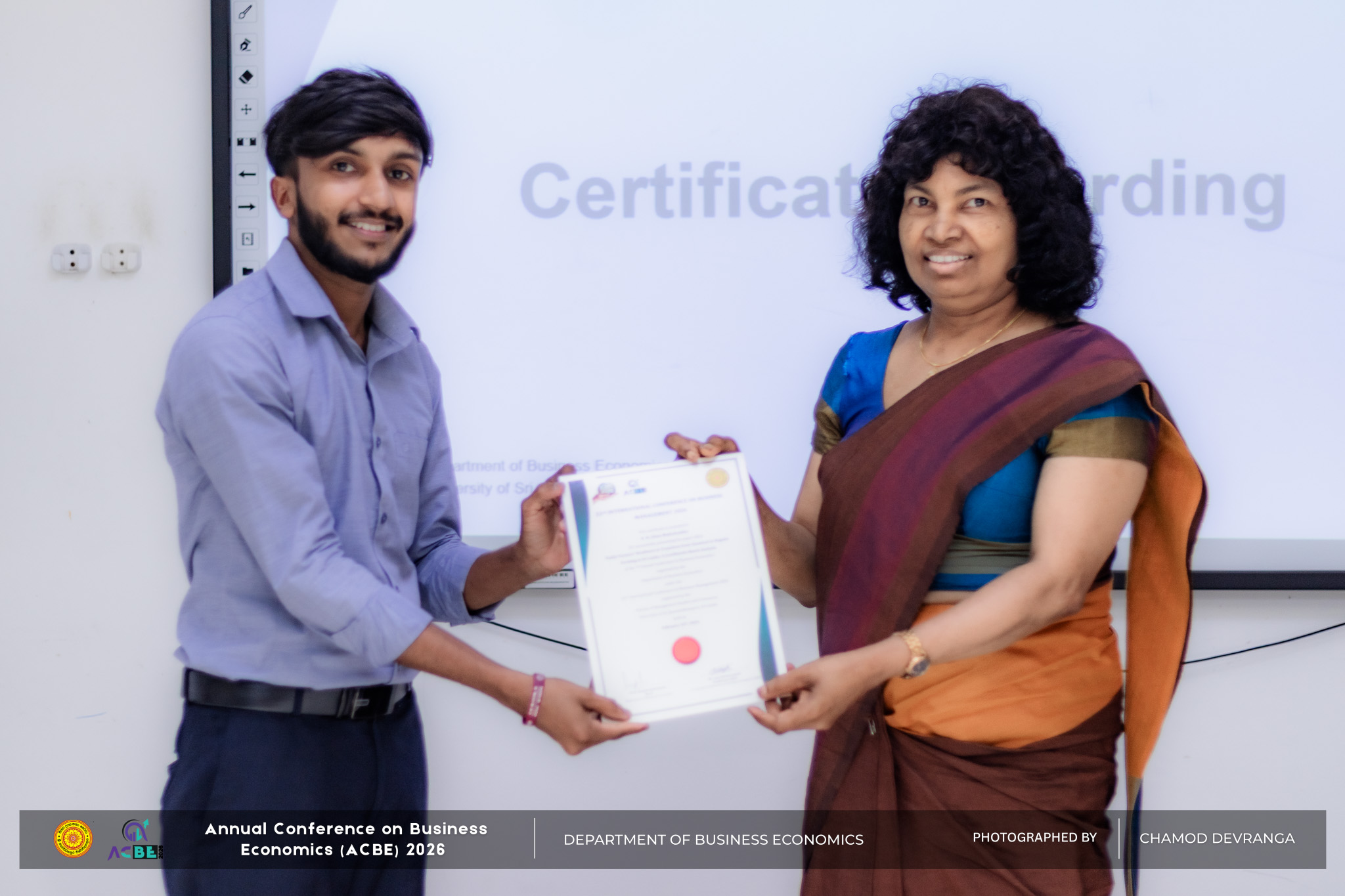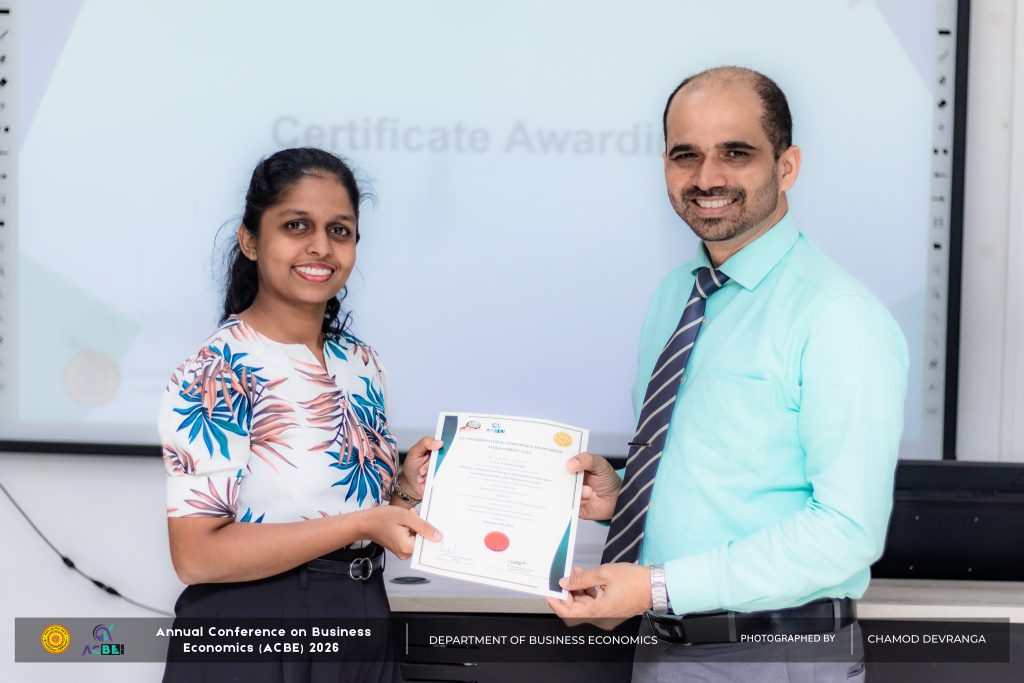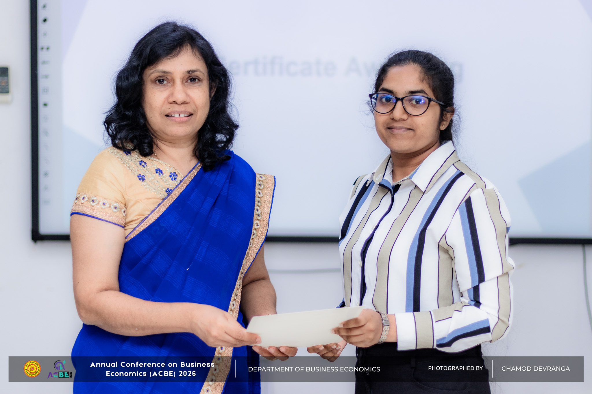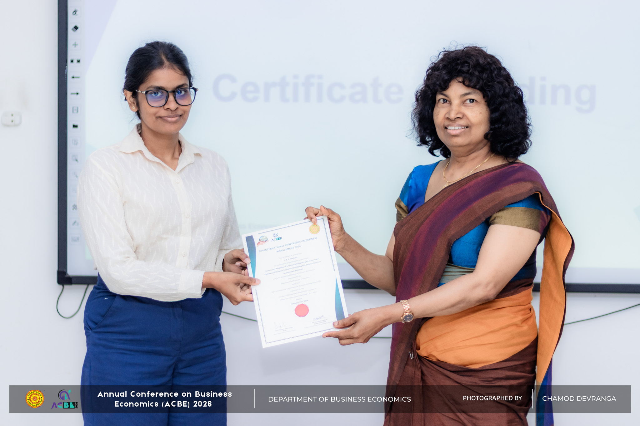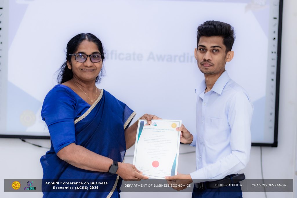 The Department of Business Economics successfully hosted the 7th Annual Conference on Business Economics (ACBE) 2026 on Monday, 16 February 2026, as part of the 22nd International Conference on Business Management (ICBM), Faculty of Management Studies and Commerce.