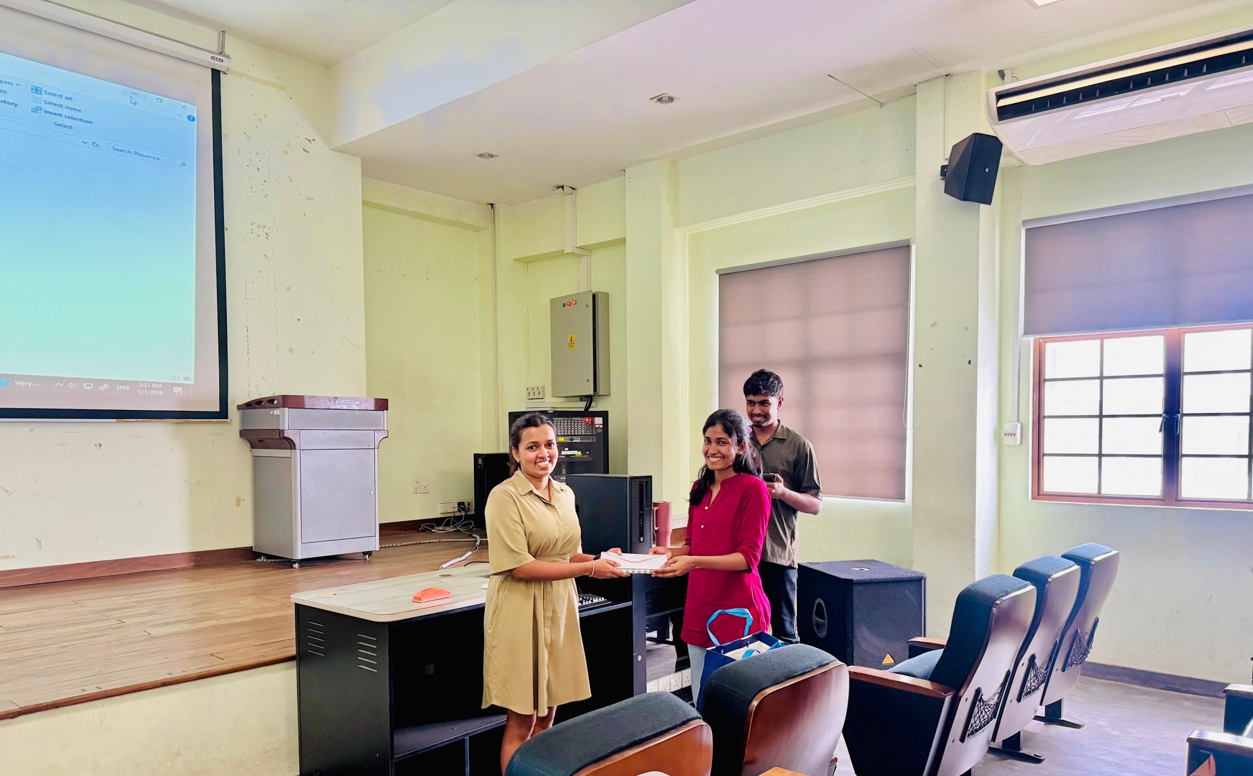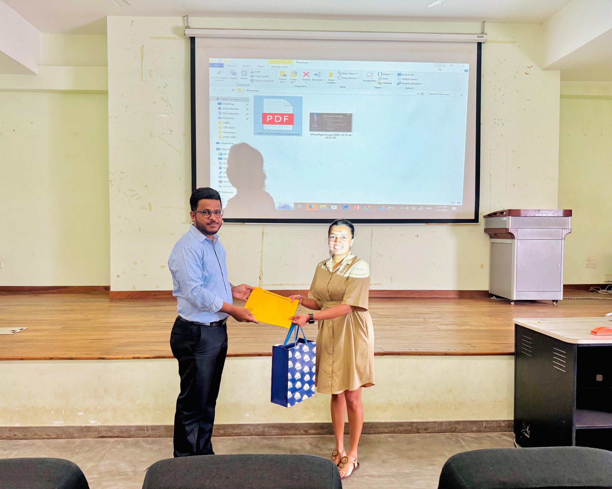 The guest speaker for the session was Ms. Pawanya Balasooriya, an Analyst attached to the Management Consulting Division at KPMG, who is also a recently passed-out alumna of the Department of Business Economics. Drawing from her own academic journey and early professional experiences, Ms. Balasooriya shared practical insights on navigating the transition from university life to the corporate world. Her presentation highlighted the importance of adaptability, continuous learning, effective communication skills, and maintaining a strong professional ethic in a competitive global environment.