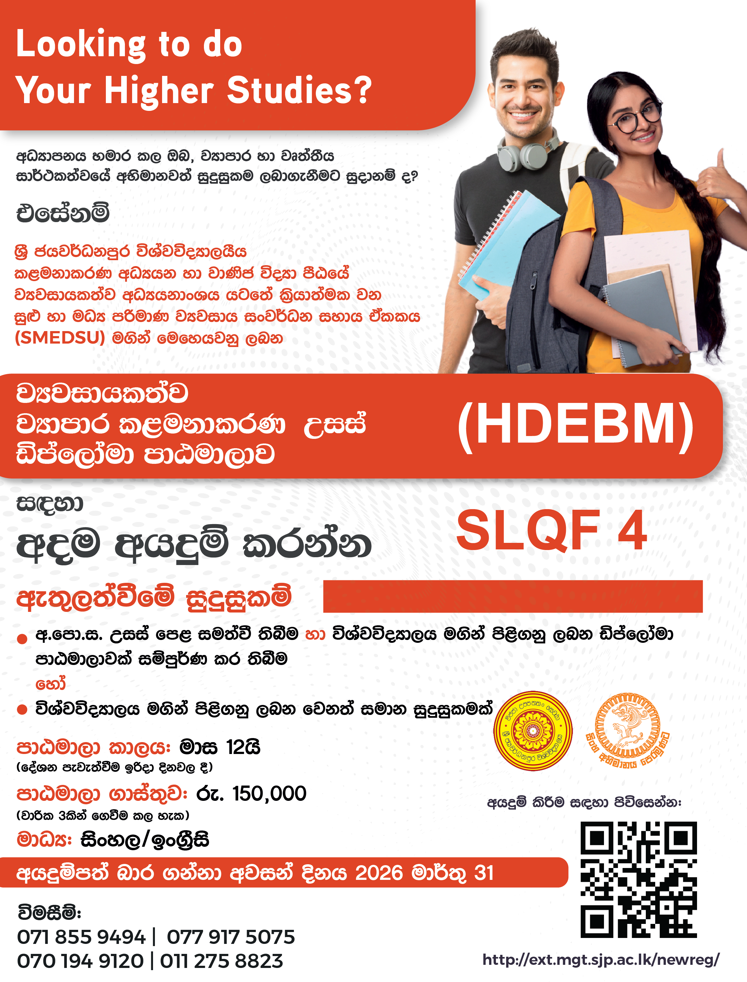 Higher Diploma in Entrepreneurial Business Management – (HDEBM): SLQF 4