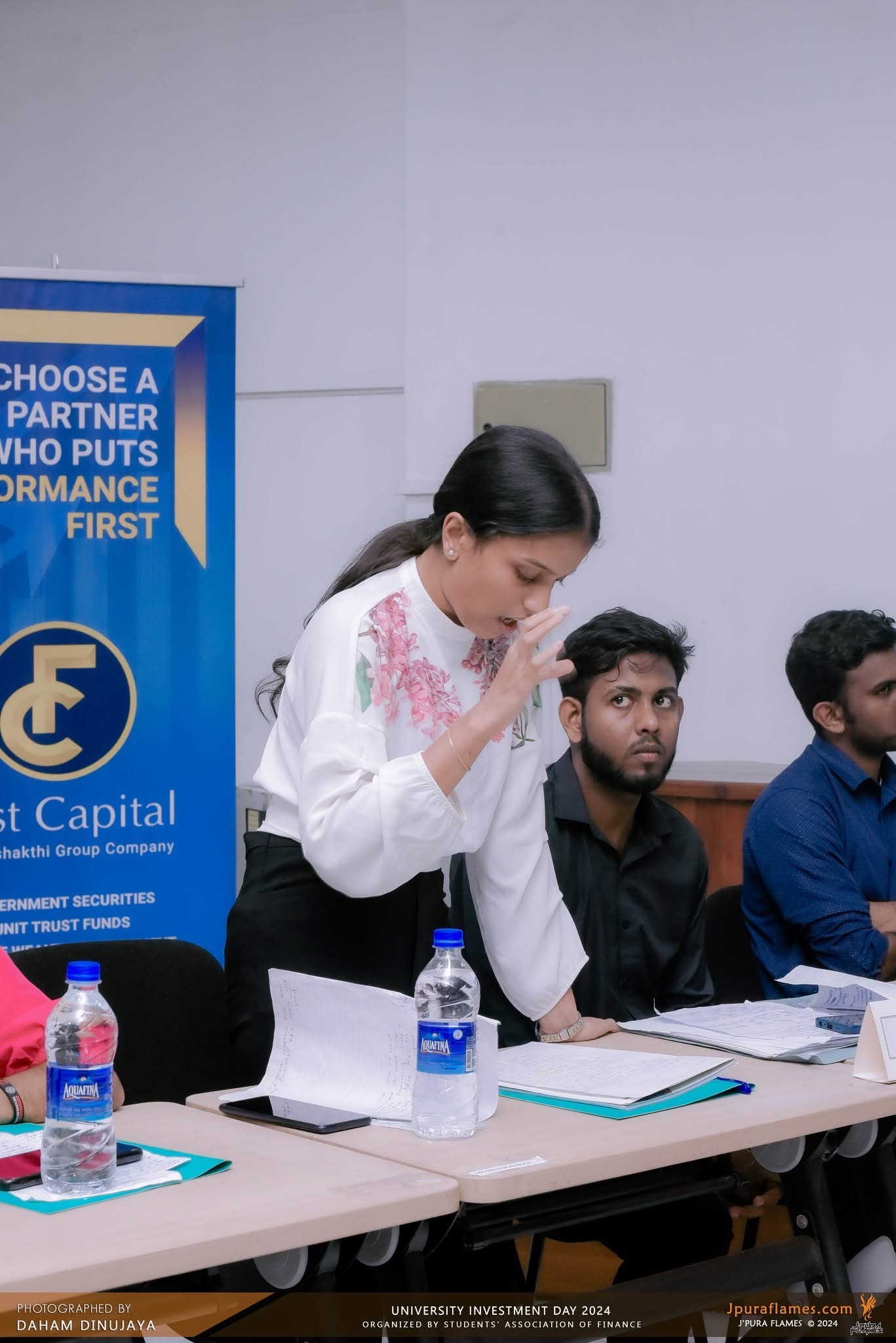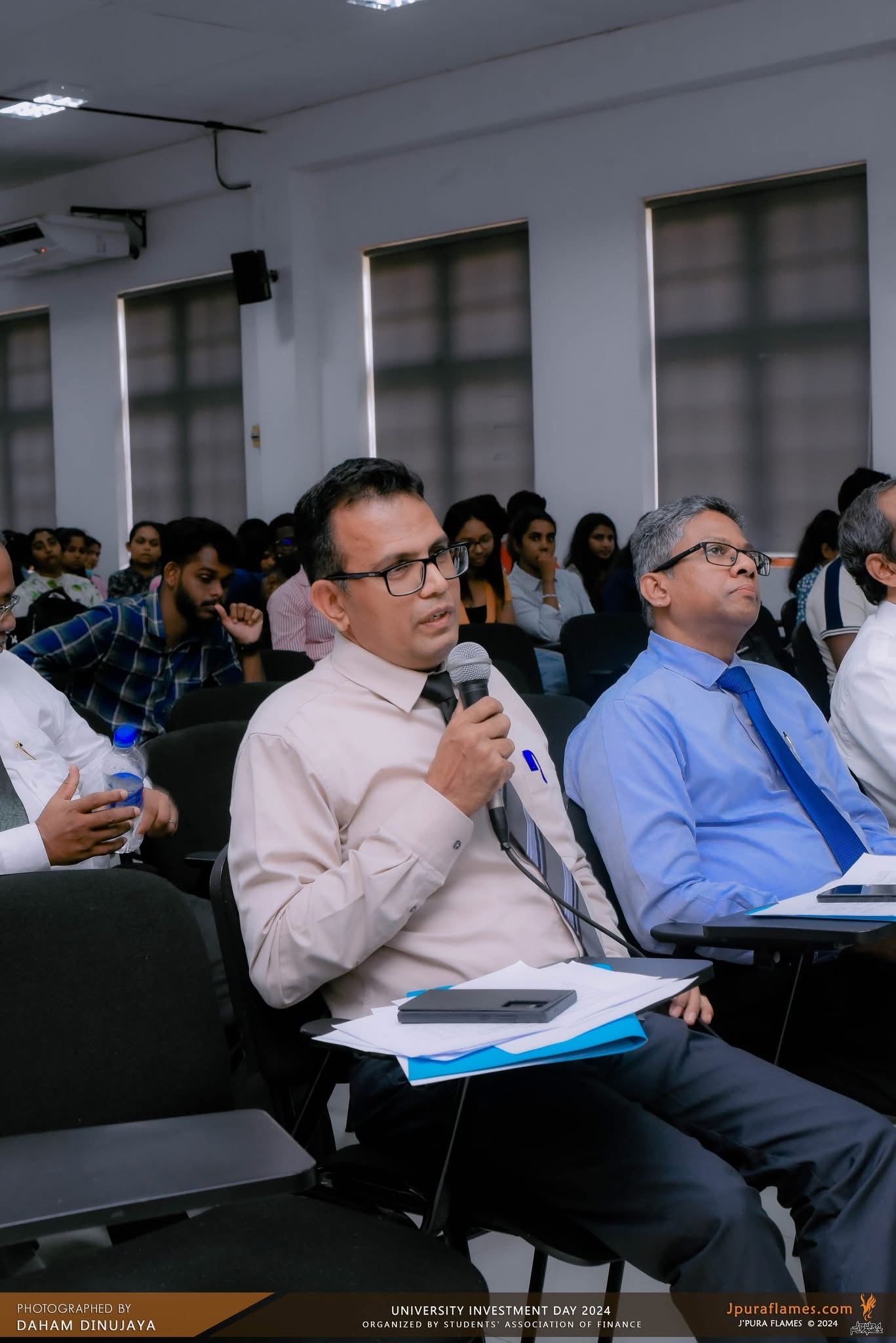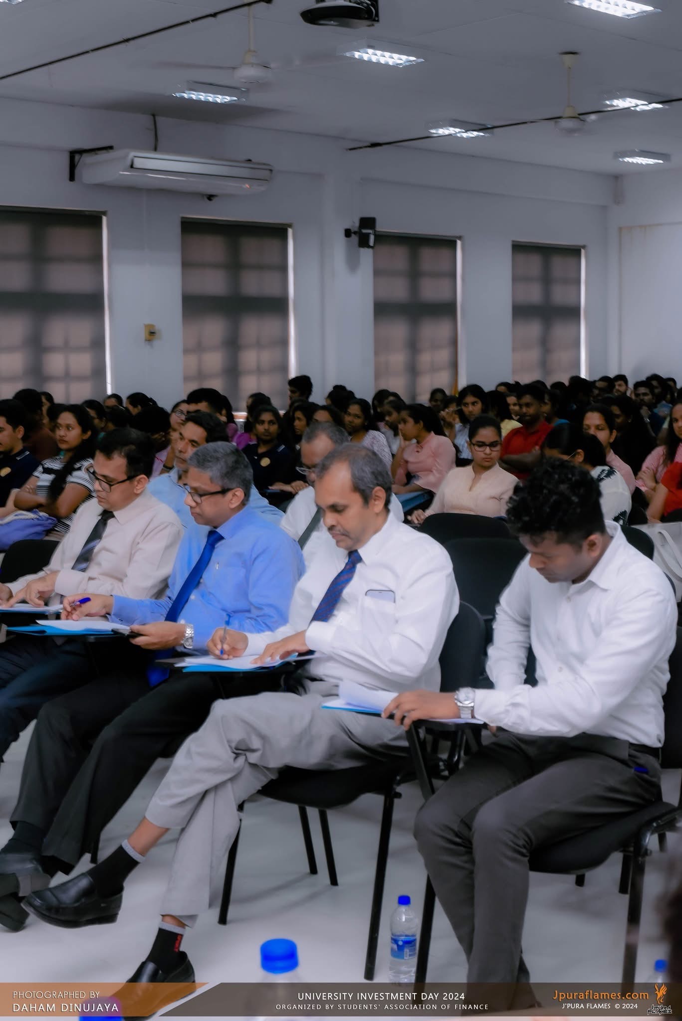 The Students’ Association of Finance of the Department of Finance, Faculty of Management Studies and Commerce, University of Sri Jayewardenepura, successfully hosted University Investment Day 2024 on 12th December 2024 at the university premises. The event brought together students, academics, and industry professionals to foster an investment culture and equip undergraduates with critical financial knowledge essential for navigating today’s dynamic financial landscape.