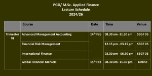 M.Sc. in Applied Finance is a practitioner- and career-oriented degree program specially designed for graduates, executives, and professionals in the discipline of finance. These postgraduate degree programs are conducted by the Department of Finance under the Faculty of Management Studies and Commerce. Postgraduate Diploma in Applied Finance (PGD AppFin) is offered as the exit strategy of the M.Sc. in Applied Finance (M.Sc. AppFin).
