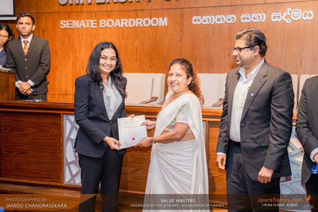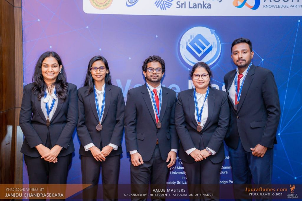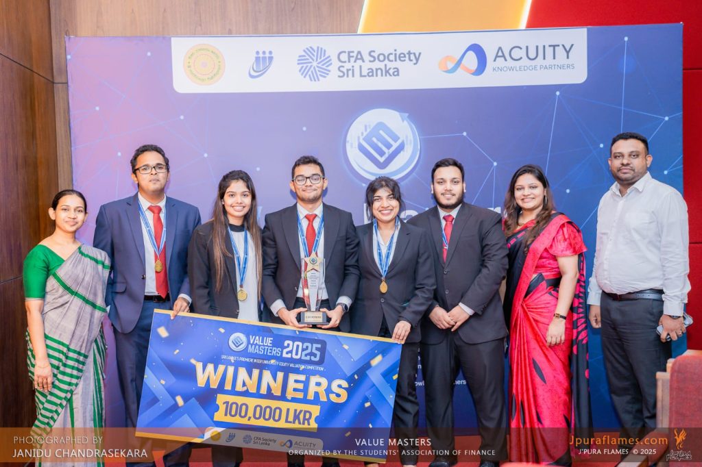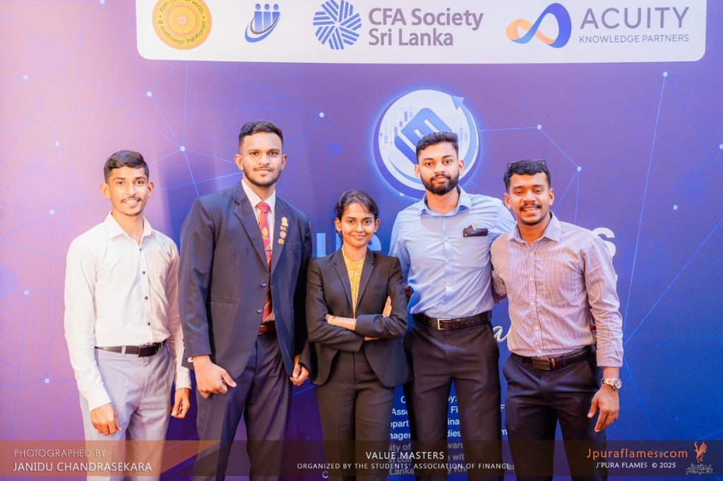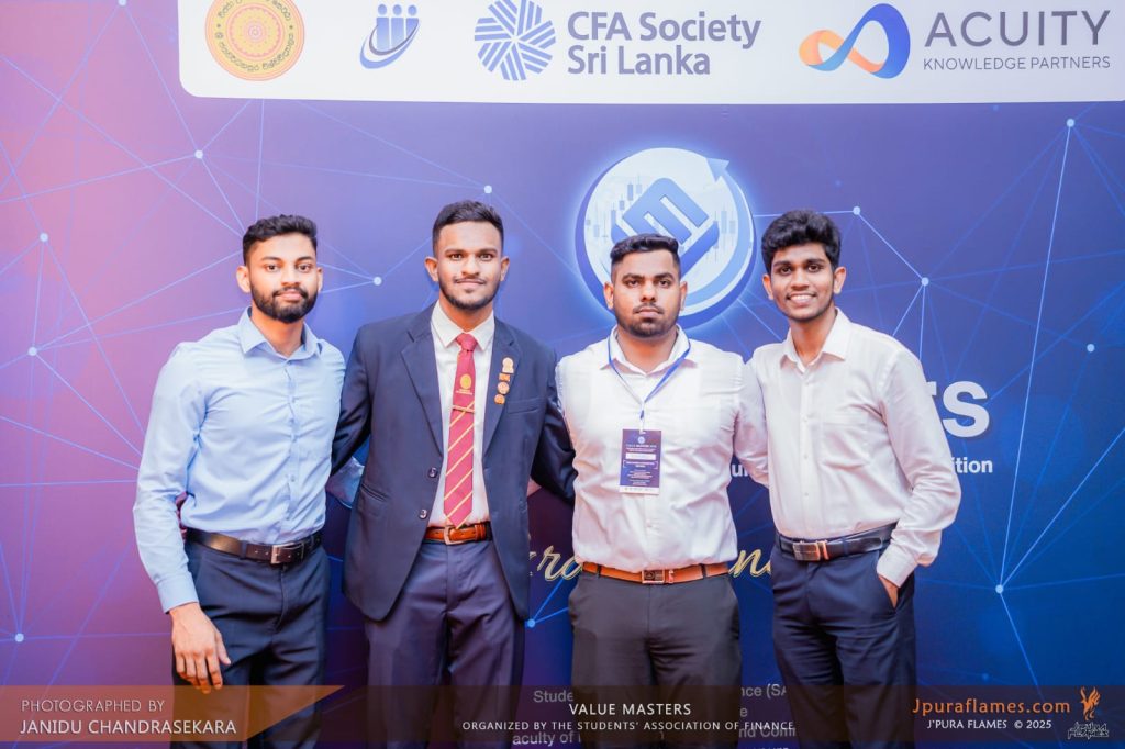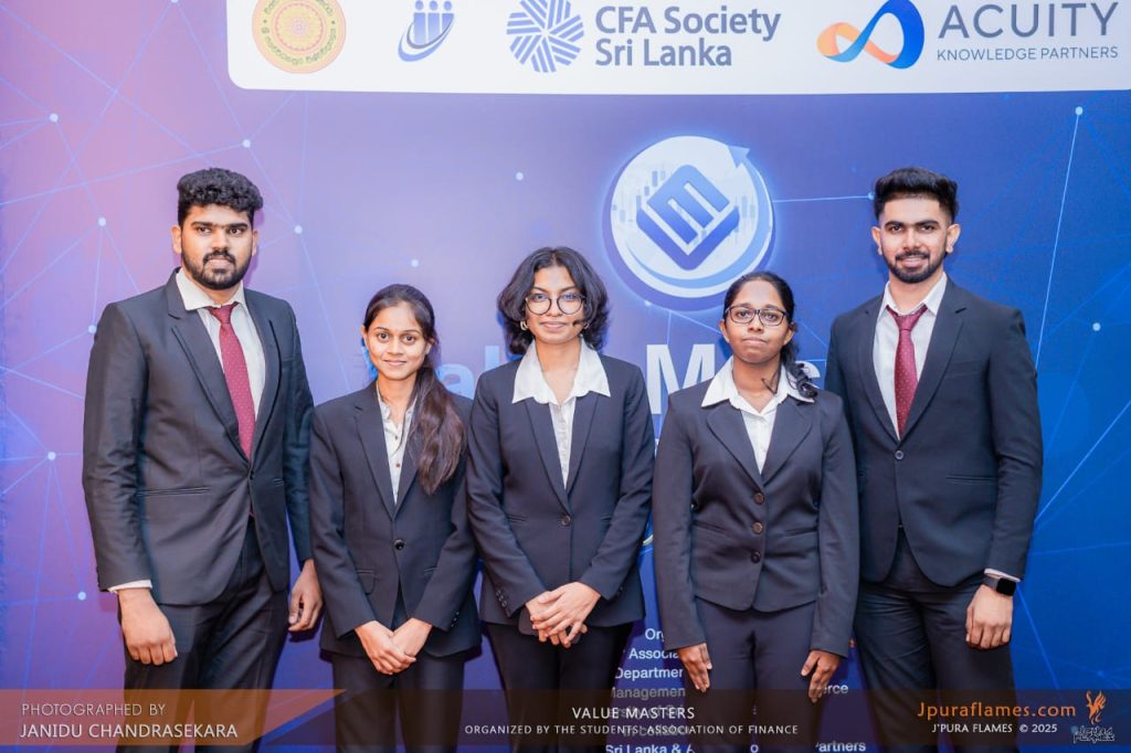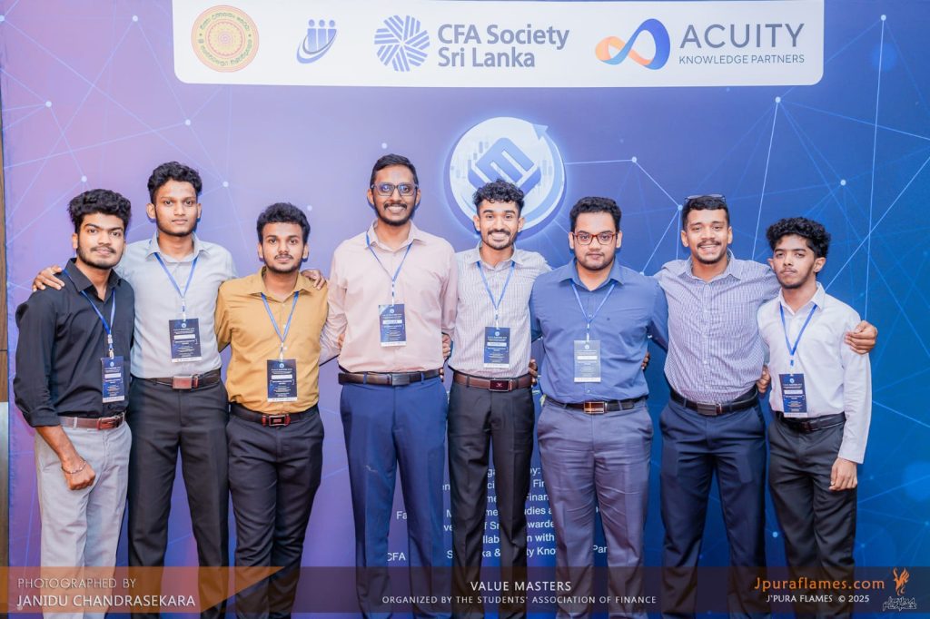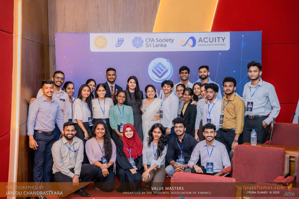 The Department of Finance, Faculty of Management Studies and Commerce, University of Sri Jayewardenepura, together with the Students’ Association of Finance, proudly hosted the Grand Finale of Value Masters 2025 on 22nd September 2025 at the University premises. The event was organized in collaboration with the CFA Society Sri Lanka and Acuity Knowledge Partners, marking yet another milestone in Sri Lanka’s premier inter-university equity valuation competition.