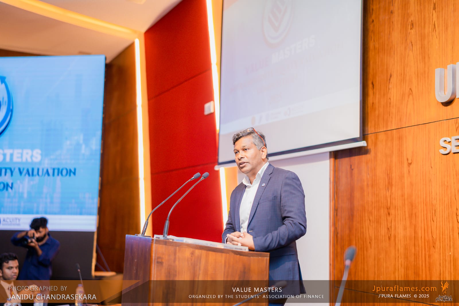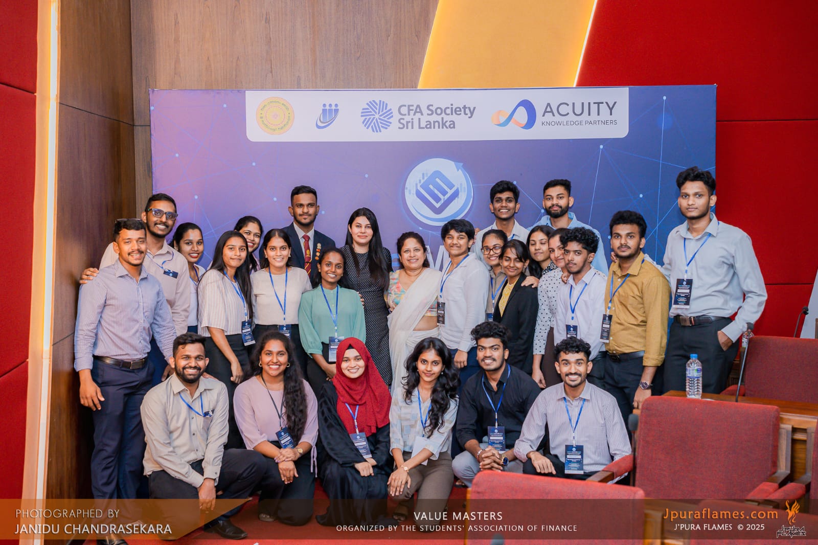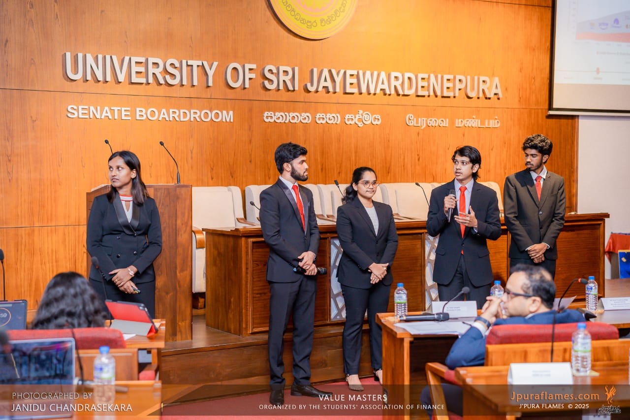 The Department of Finance, Faculty of Management Studies and Commerce, University of Sri Jayewardenepura, together with the Students’ Association of Finance, proudly hosted the Grand Finale of Value Masters 2025 on 22nd September 2025 at the University premises. The event was organized in collaboration with the CFA Society Sri Lanka and Acuity Knowledge Partners, marking yet another milestone in Sri Lanka’s premier inter-university equity valuation competition.
