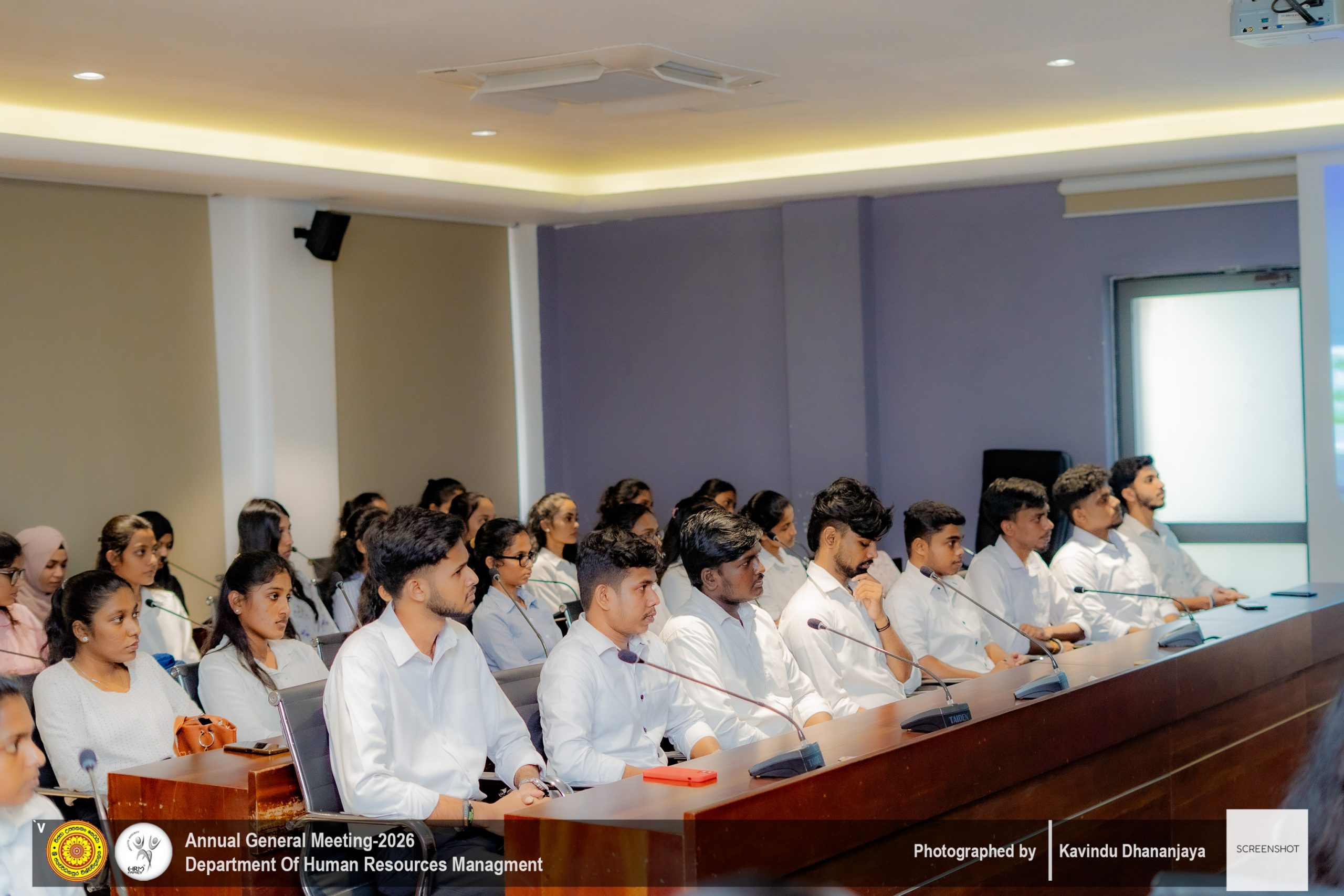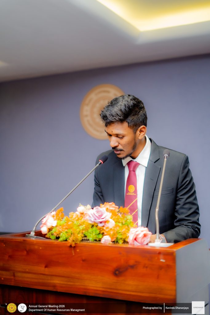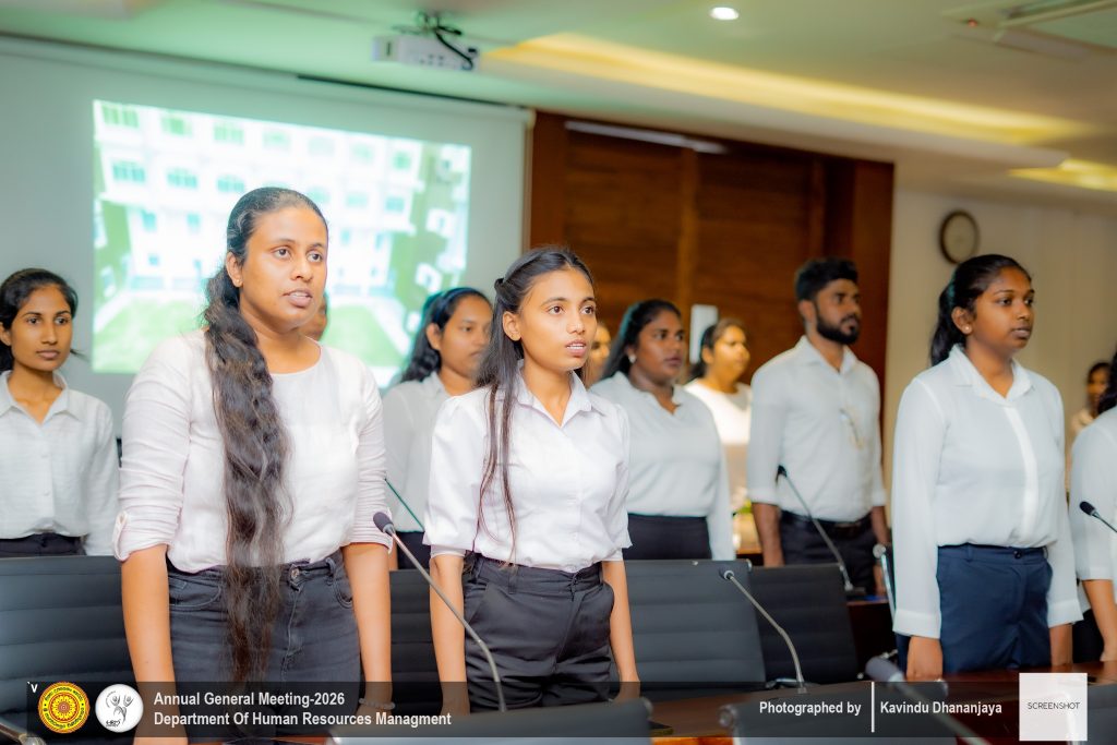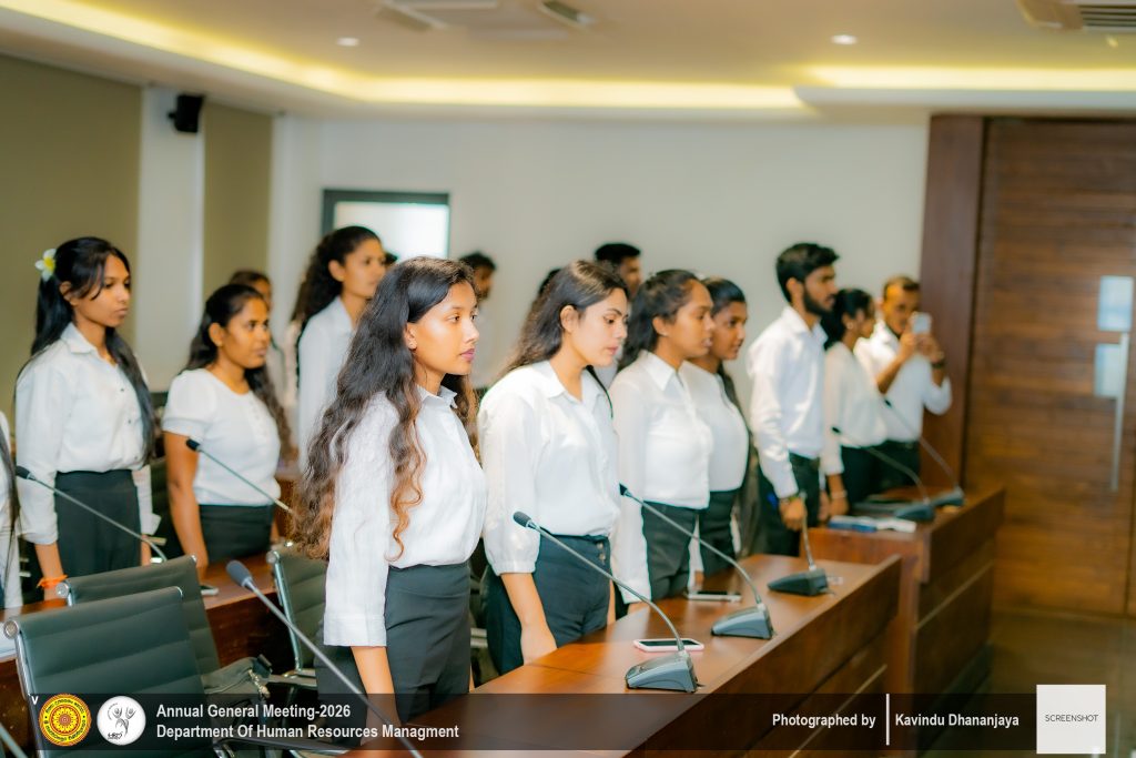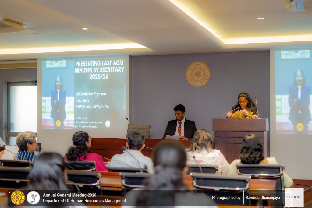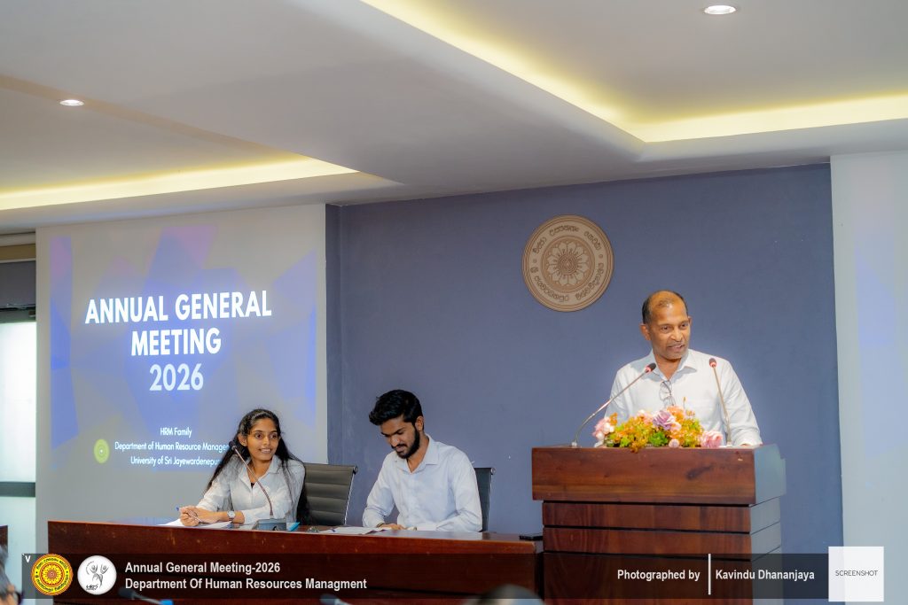 The Annual General Meeting (AGM) of the Department of Human Resource Management, University of Sri Jayewardenepura, was successfully held on ๐Ÿญ๐Ÿฐ๐˜๐—ต ๐—๐—ฎ๐—ป๐˜‚๐—ฎ๐—ฟ๐˜† ๐—ณ๐—ฟ๐—ผ๐—บ ๐Ÿญ๐Ÿฎ.๐Ÿฌ๐Ÿฌ ๐—ฝ๐—บ ๐—ผ๐—ป๐˜„๐—ฎ๐—ฟ๐—ฑ๐˜€ ๐—ฎ๐˜ ๐˜๐—ต๐—ฒ ๐—ก๐—ฒ๐˜„ ๐—™๐—ฎ๐—ฐ๐˜‚๐—น๐˜๐˜† ๐—•๐—ผ๐—ฎ๐—ฟ๐—ฑ๐—ฟ๐—ผ๐—ผ๐—บ. The event was graced by the presence of all lecturers of the Department of Human Resource Management, along with second-, third-, and fourth-year undergraduate students, making it a significant academic and departmental gathering.