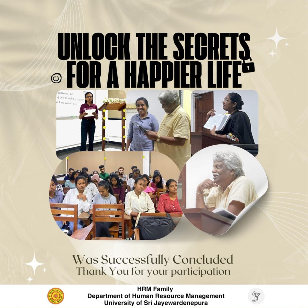 The Department of Human Resource Management successfully organized a guest lecture on “Unlocking the Secret for a Happier Life” under the module HRM 2270: Self & Professional Development.