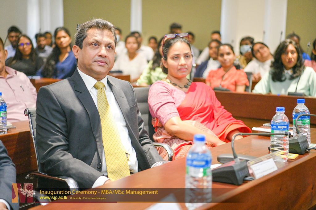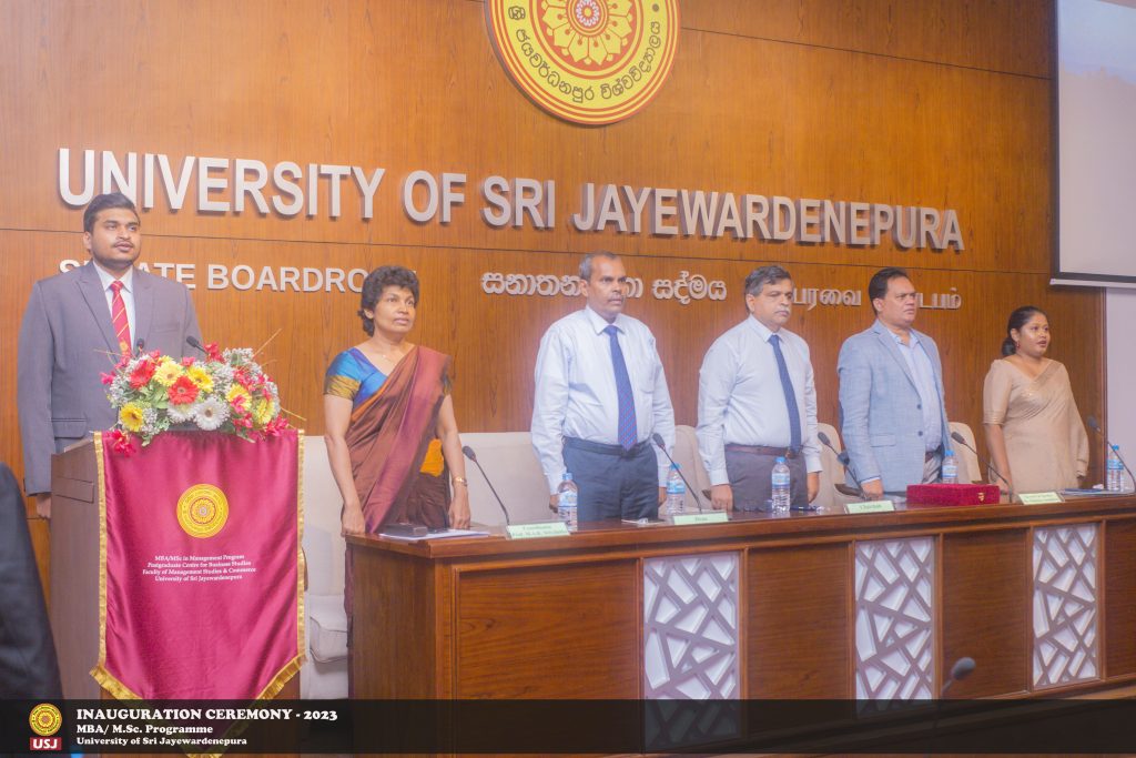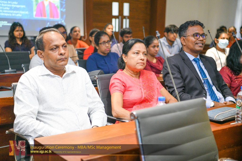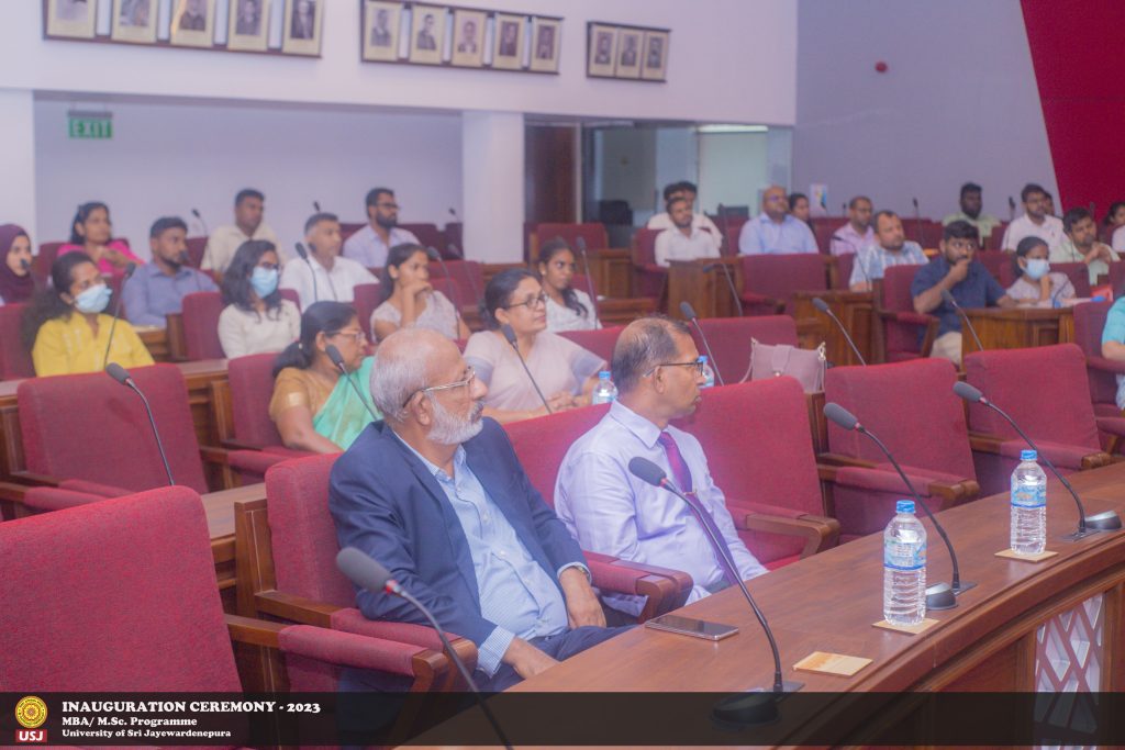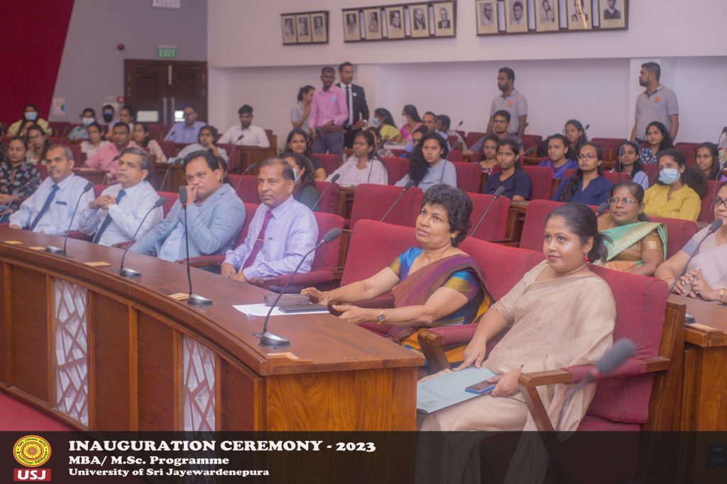 The Inauguration Ceremony of the MBA/M.Sc. in Management Programme 2023 was successfully held on February 19, 2023, at the Senate Boardroom of the University of Sri Jayewardenepura. The ceremony was led by Mr. Pushpika Janadeera, Managing Director of Dipped Products PLC and a proud J’pura MBA alumnus. He shared his experiences in the export market before, during, and after the COVID-19 pandemic, highlighting how his J’pura MBA expertise had fostered in his professional success. Prof. P.D. Nimal, Dean of the Faculty of Management Studies and Commerce, Prof. S.T.W. Saman Yapa, Chairman—of the Board of Studies in Management Studies, Prof. M.A.K. Sriyalatha, Coordinator—MBA Unit, and Ms. W.R.M. Shehani Shanika, Assistant Coordinator of the same Unit, graced the ceremony. Senior academics representing the lecture panel including Professor Aruna Shantha Gamage who was the former coordinator of the Unit also participated and added more colour to the ceremony. A total of 100 candidates participated in the inauguration ceremony, representing diversified professional backgrounds.