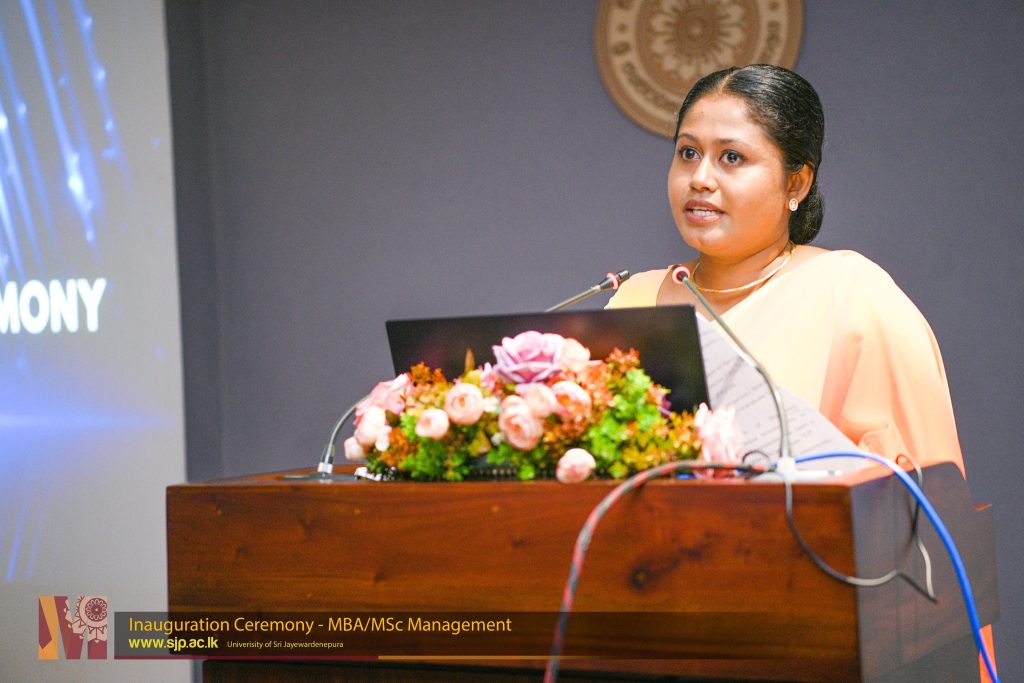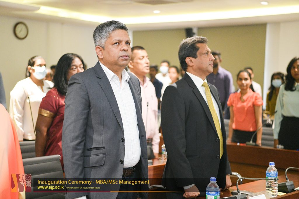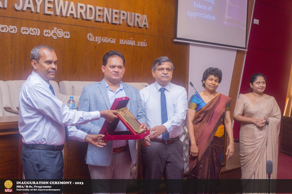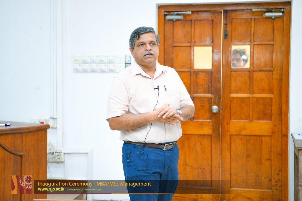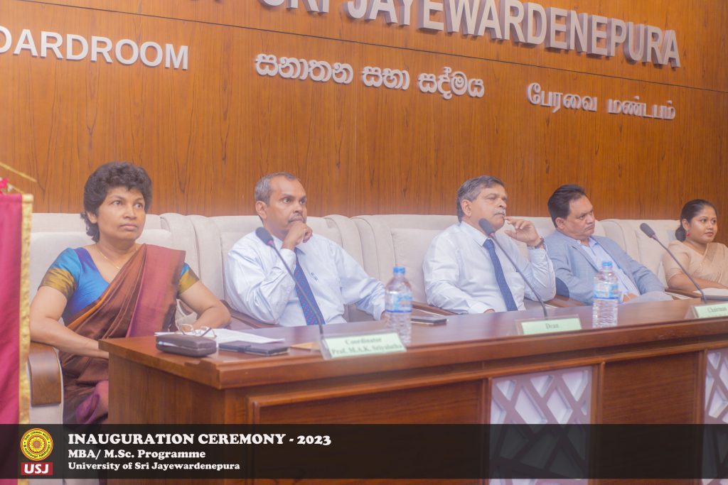The Inauguration Ceremony of the MBA/M.Sc. in Management Programme 2023 was successfully held on February 19, 2023, at the Senate Boardroom of the University of Sri Jayewardenepura. The ceremony was led by Mr. Pushpika Janadeera, Managing Director of Dipped Products PLC and a proud J’pura MBA alumnus. He shared his experiences in the export market before, during, and after the COVID-19 pandemic, highlighting how his J’pura MBA expertise had fostered in his professional success. Prof. P.D. Nimal, Dean of the Faculty of Management Studies and Commerce, Prof. S.T.W. Saman Yapa, Chairman—of the Board of Studies in Management Studies, Prof. M.A.K. Sriyalatha, Coordinator—MBA Unit, and Ms. W.R.M. Shehani Shanika, Assistant Coordinator of the same Unit, graced the ceremony. Senior academics representing the lecture panel including Professor Aruna Shantha Gamage who was the former coordinator of the Unit also participated and added more colour to the ceremony. A total of 100 candidates participated in the inauguration ceremony, representing diversified professional backgrounds.