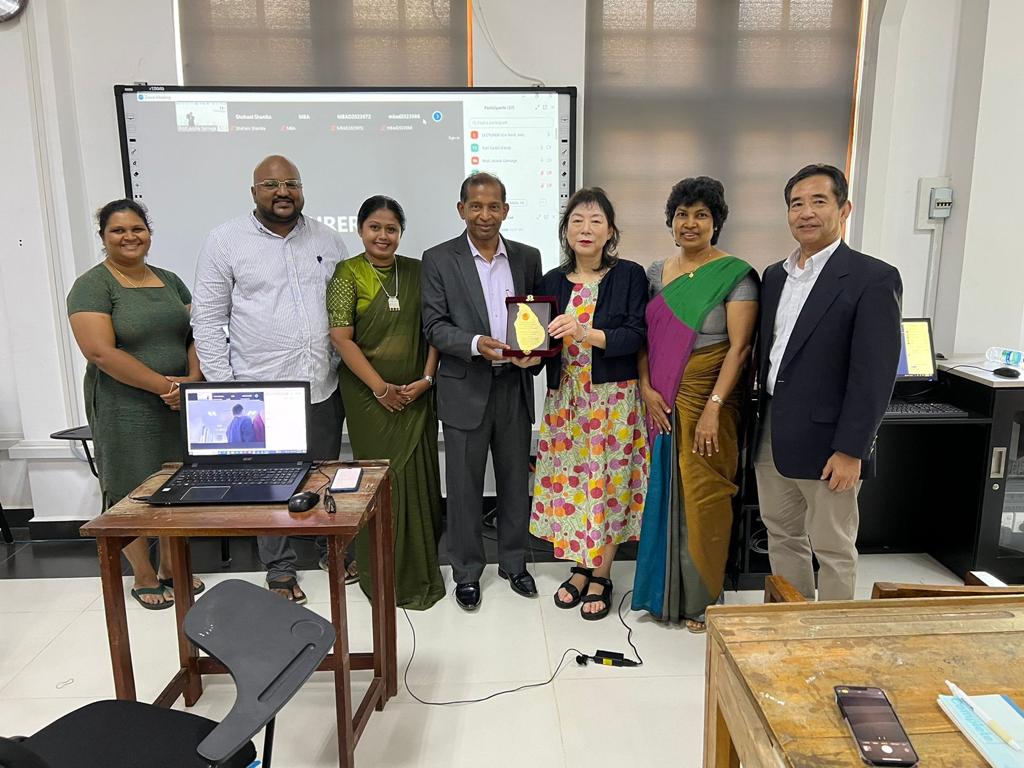 Prof. Yuri Sadoi from the Department of Economics of Meijo University, Japan conducted a special guest lecture for MBA/M.Sc. students on the topic “Knowledge, Innovation and Management” on 24th December 2023 at the Faculty of Management Studies and Commerce, University of Sri Jayewardenepura. Prof. Yuri also serves as a visiting professor in two Universities namely; Doshisha University in Japan and Mandalay University in Myanmar. Prof. Yuri received her PhD in the year 1999 from the Graduate School of Humanity and Environmental Studies, Kyoto University, Japan. Prof. Yuri serves as a professional member of Japan Association for Malaysian Studies and Japan Academy of International Business Studies. This was a hybrid lecture in which more than 50 participants joined online. Prof. Yuri shared her experience in Japan relevant to the topic while focusing on disruptive innovation with examples. The MBA/M.Sc. Unit specially acknowledge the support of Prof. Aruna S. Gamage, former Coordinator of the programme for coordinating the special speaker. Prof. M.A.K. Sriyalatha, Coordinator of the programme and Ms. W.R.M. Shehani Shanika, Assistant Coordinator also participated in the event.