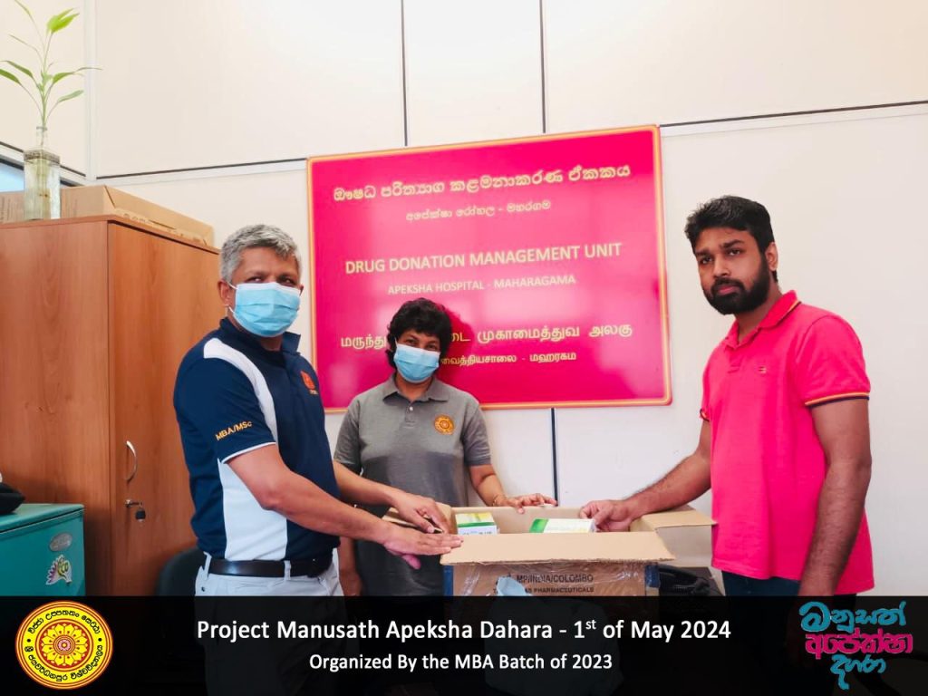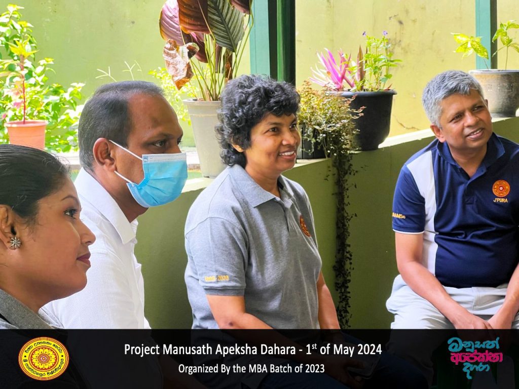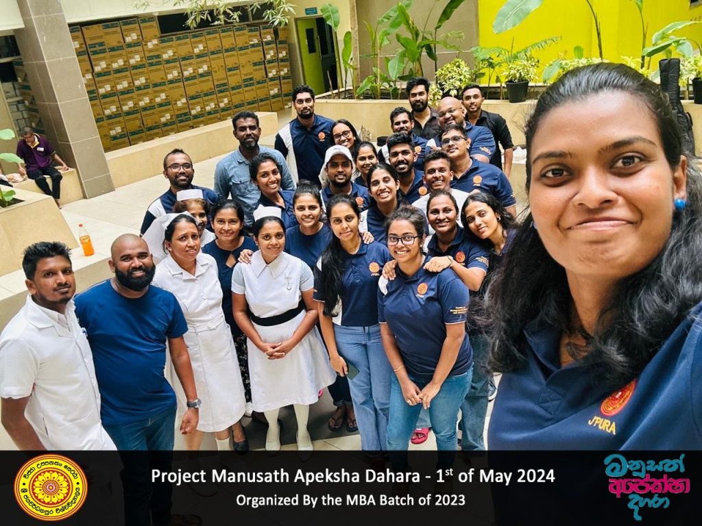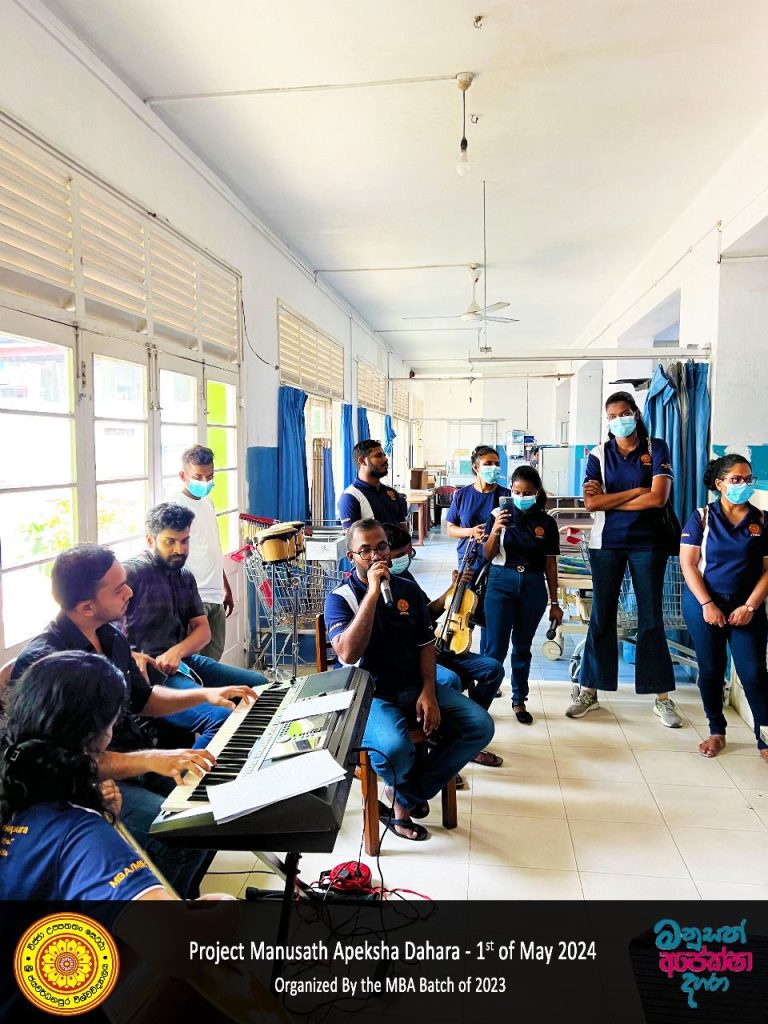 The Manusath Apeksha Dahara program, held on the 1st of May from 10 am to 5 pm at Apeksha Hospital Maharagama, epitomized a harmonious collaboration between the MBA batch of 2023 and Apeksha Hospital Maharagama. This initiative encompassed various facets, including a successful music therapy session, provision of requested items to the hospital, distribution of medications, and blood donation to the hospital’s blood bank. The seamless execution of the program owed much to the active involvement of distinguished lecturers from the esteemed Japura MBA/M.Sc. program. Among them were Dr. Dushan Jayawickrama, Dean of the Faculty of Management Studies and Commerce, Prof. Kumuduni Sriyalatha, Coordinator MBA/MSc in Management Program, Prof. Sudath M. Amarasena, Mr. Dilan Rathnayaka (Senior Lecturer), Ms. W. R. M. Shehani Shanika, Assistant Coordinator MBA/MSc in Management Program. Furthermore, the participation of J’pura Masters Alumni Association members and fellow batch mates added to the collective effort, fostering a sense of community and camaraderie. Through the Manusath Apeksha Dahara program, the MBA batch of 2023, alongside Apeksha Hospital Maharagama, demonstrated a commitment to holistic healthcare and social responsibility, leaving a positive impact on both the institution and the broader community.