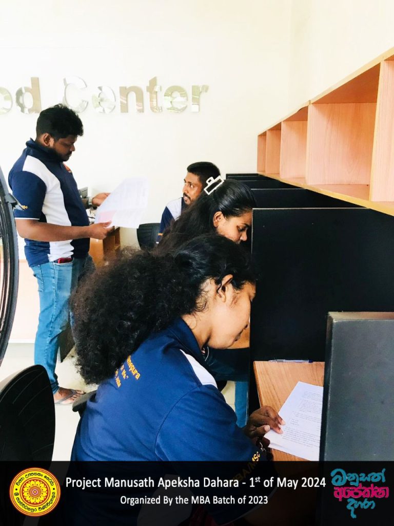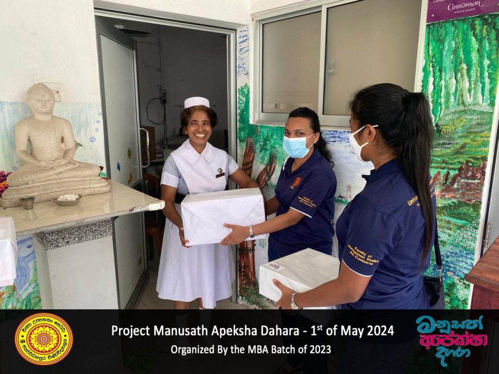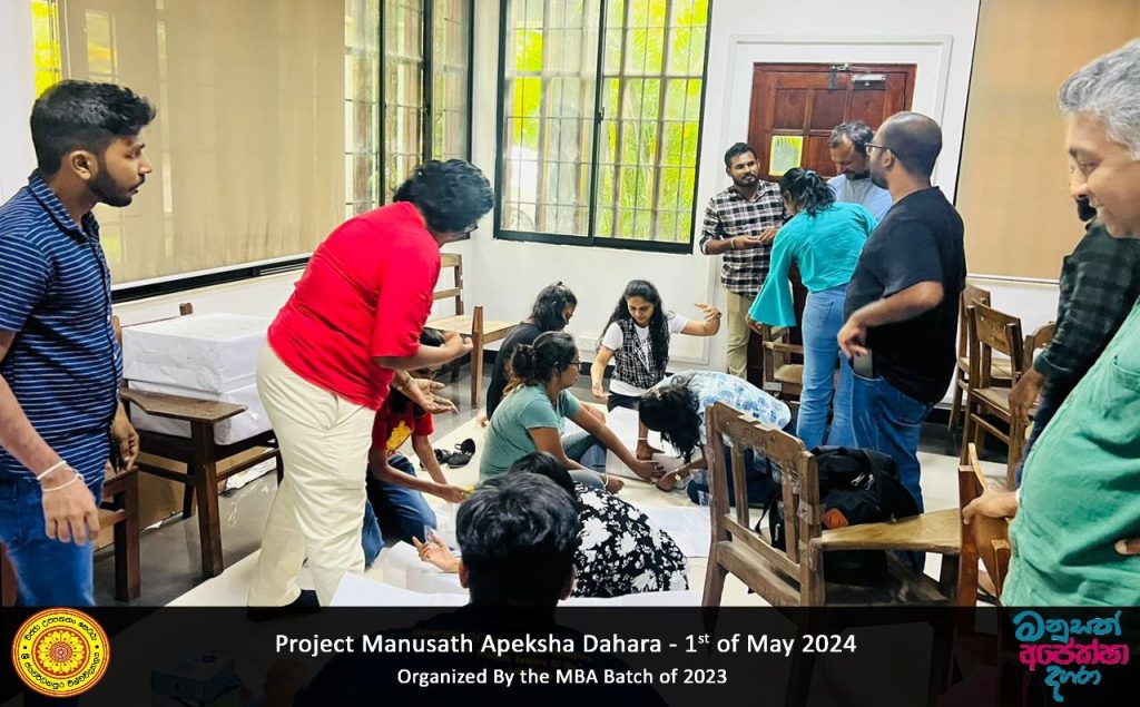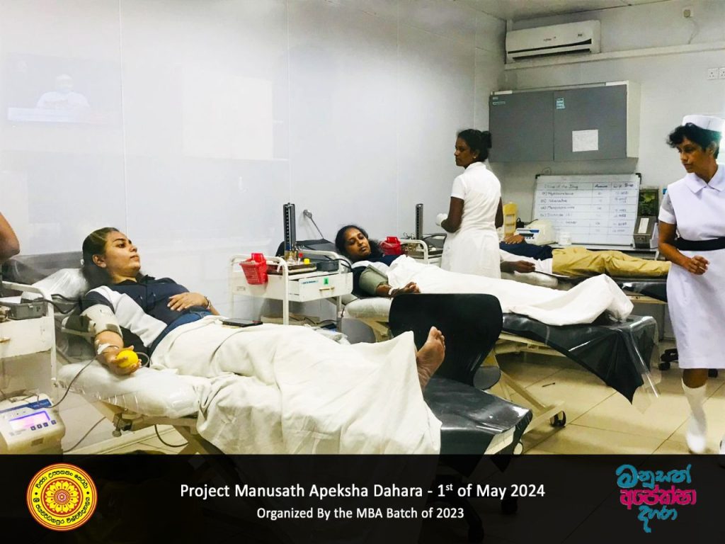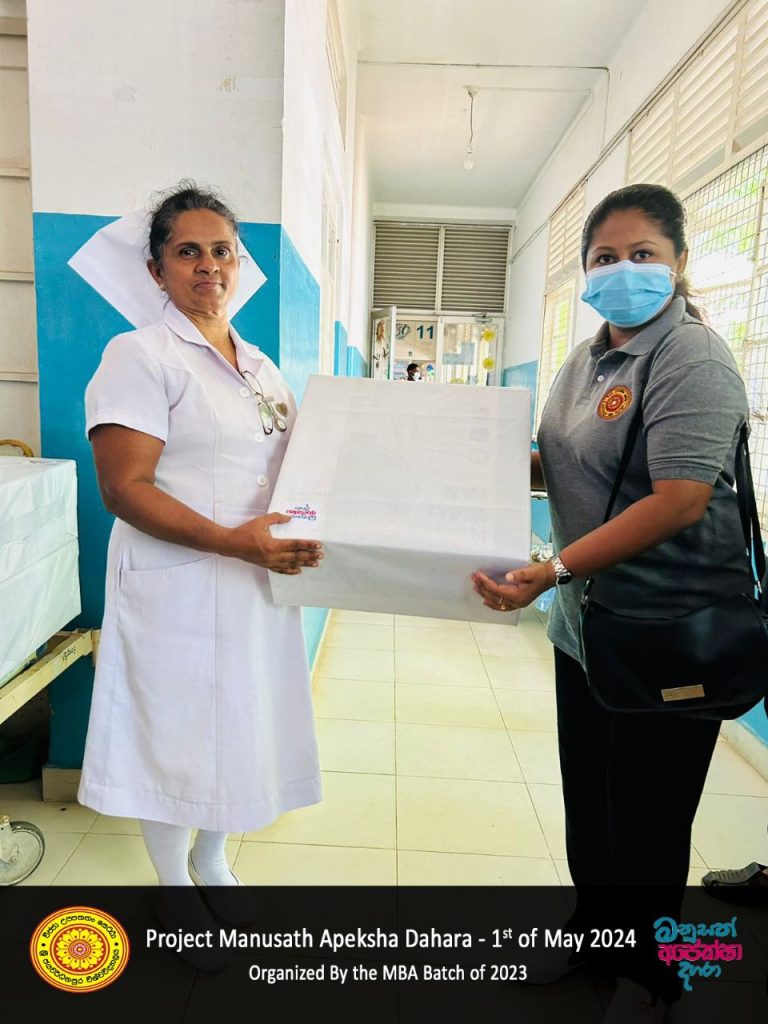 The Manusath Apeksha Dahara program, held on the 1st of May from 10 am to 5 pm at Apeksha Hospital Maharagama, epitomized a harmonious collaboration between the MBA batch of 2023 and Apeksha Hospital Maharagama. This initiative encompassed various facets, including a successful music therapy session, provision of requested items to the hospital, distribution of medications, and blood donation to the hospital’s blood bank. The seamless execution of the program owed much to the active involvement of distinguished lecturers from the esteemed Japura MBA/M.Sc. program. Among them were Dr. Dushan Jayawickrama, Dean of the Faculty of Management Studies and Commerce, Prof. Kumuduni Sriyalatha, Coordinator MBA/MSc in Management Program, Prof. Sudath M. Amarasena, Mr. Dilan Rathnayaka (Senior Lecturer), Ms. W. R. M. Shehani Shanika, Assistant Coordinator MBA/MSc in Management Program. Furthermore, the participation of J’pura Masters Alumni Association members and fellow batch mates added to the collective effort, fostering a sense of community and camaraderie. Through the Manusath Apeksha Dahara program, the MBA batch of 2023, alongside Apeksha Hospital Maharagama, demonstrated a commitment to holistic healthcare and social responsibility, leaving a positive impact on both the institution and the broader community.
