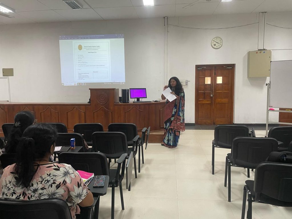 The session was led by Professor M.A. Kumuduni Sriyalatha, Programme Coordinator, and Ms. W.R.M. Shehani Shanika, Assistant Coordinator, who provided valuable insights into the curriculum, academic expectations, and essential administrative formalities that students must adhere to.