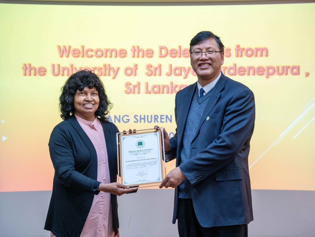 While being in China students and academic staff visited the Zhejiang Shuren University with the intention of enriching the research collaborations between the two universities. Academic staff and postgraduate students of the FMSC were warmly welcomed by the president of the university Professor Li Lu. The university visit included interactive sessions conducted by Professor YAN Hong, Dean of School of Economics and Management, Professor HUANG Qiubo,Vice Dean of School of Economics and Management, Professor WAN Guowei,Director of Office of International Affairs, Dr. Wasi Ul Hassan Shan, Associate professor of School of Economics and Management. All discussion were meaningful and thought-provoking, offering valuable insights that served as an eye-opener for postgraduate students, encouraging them to consider emerging research areas. Further, special presentations was done by the Shuren University students focusing on Sri Lanka.