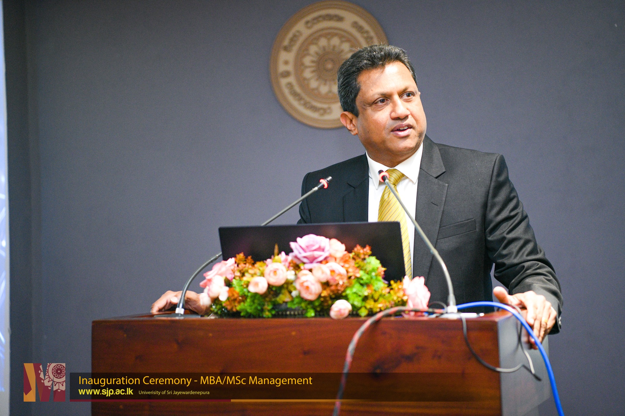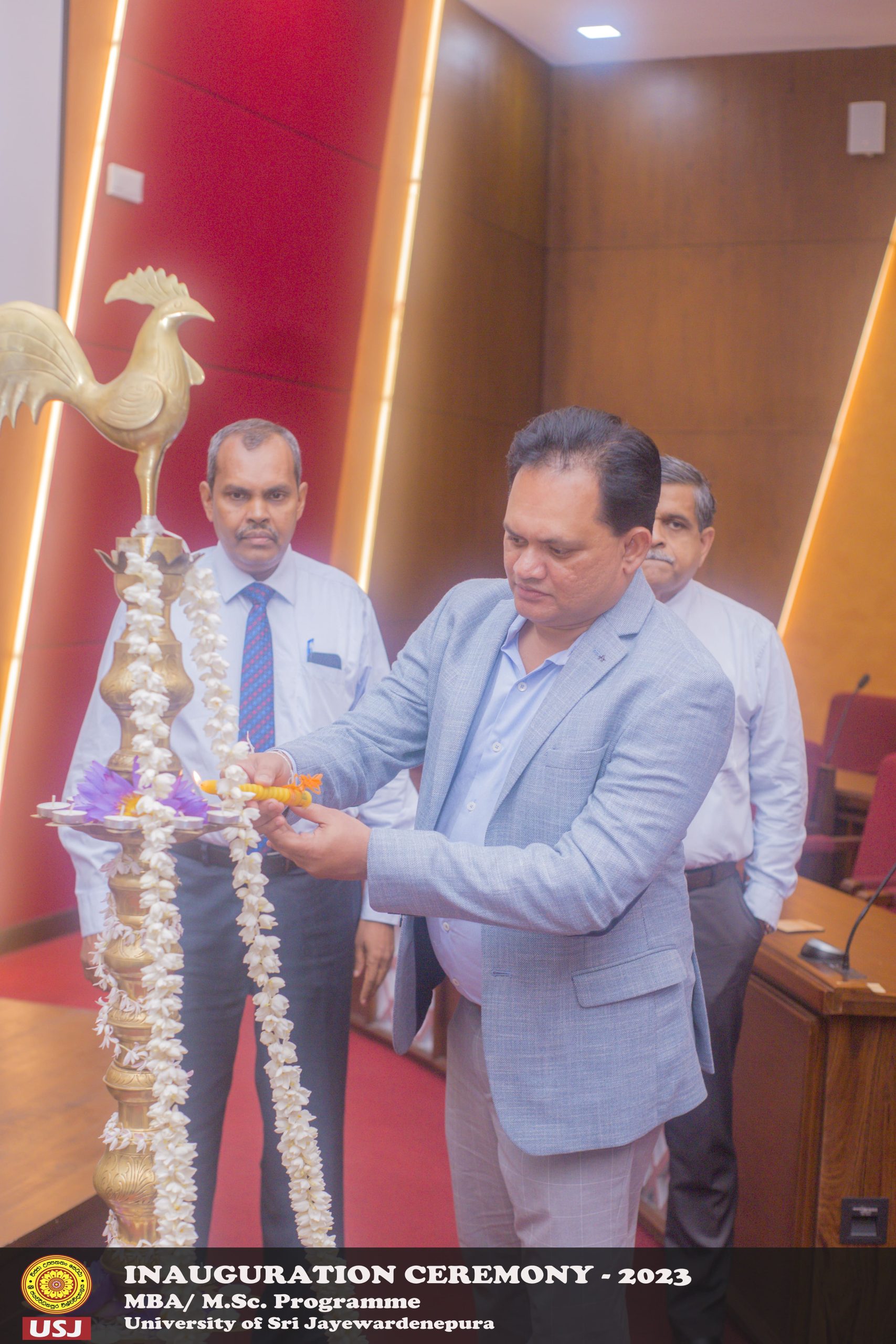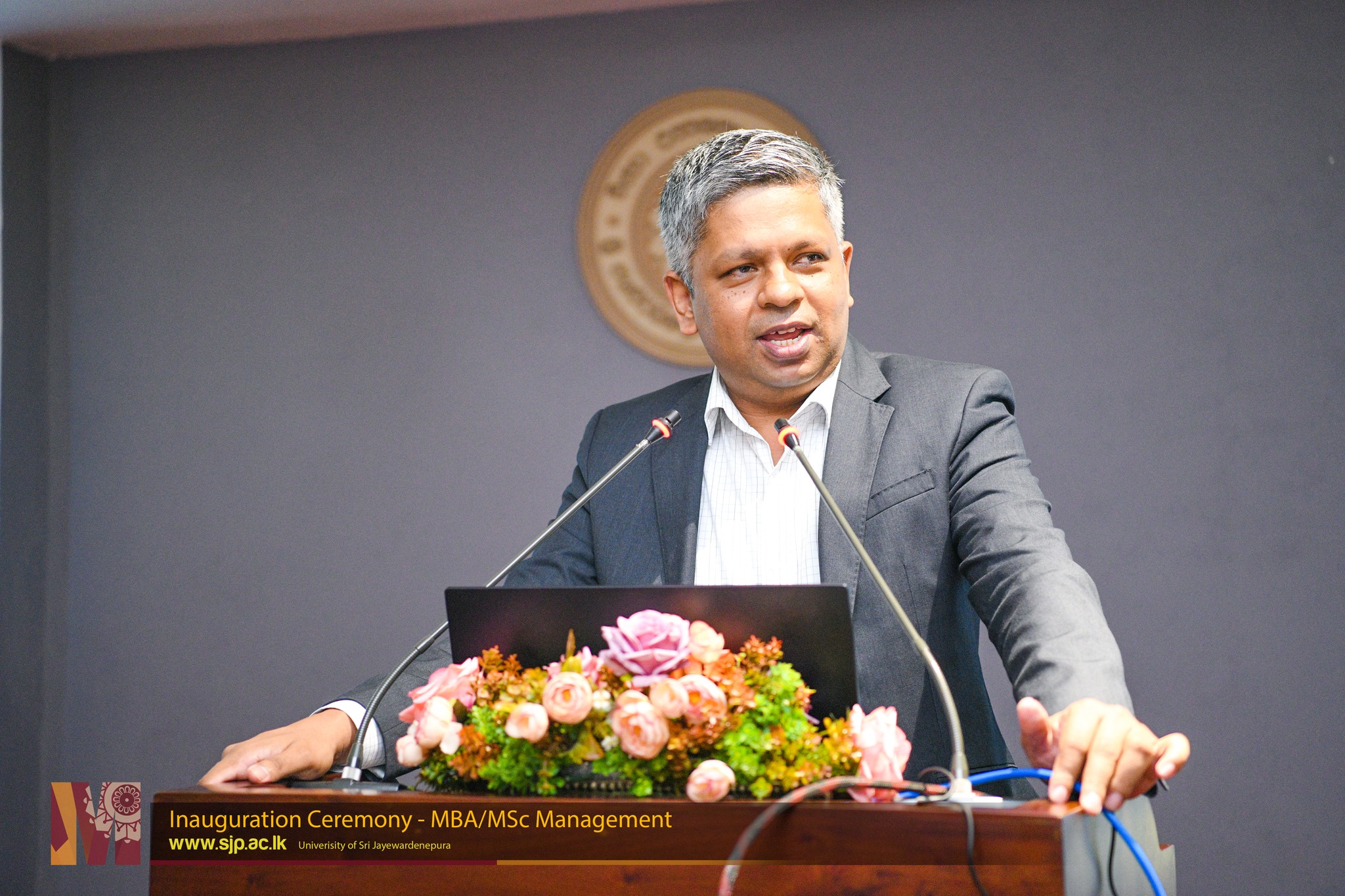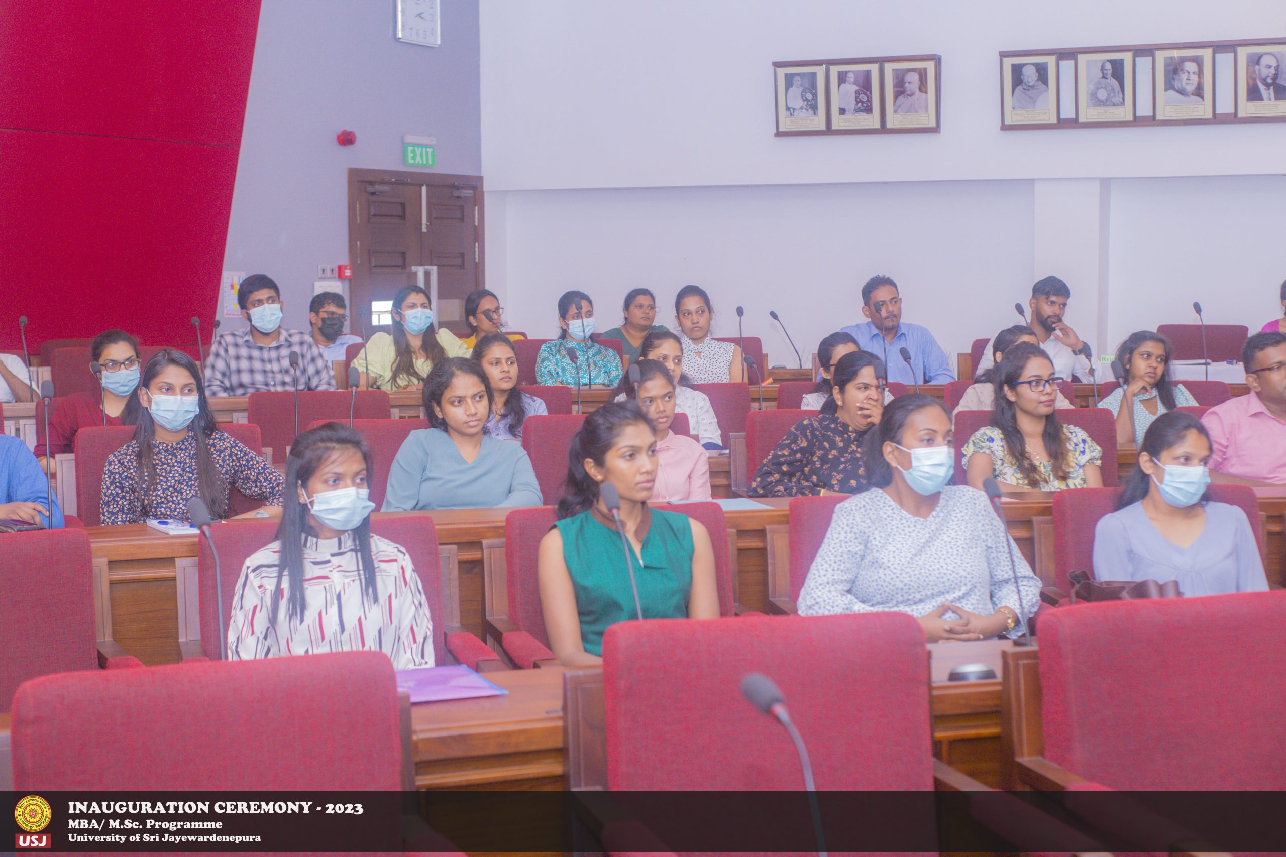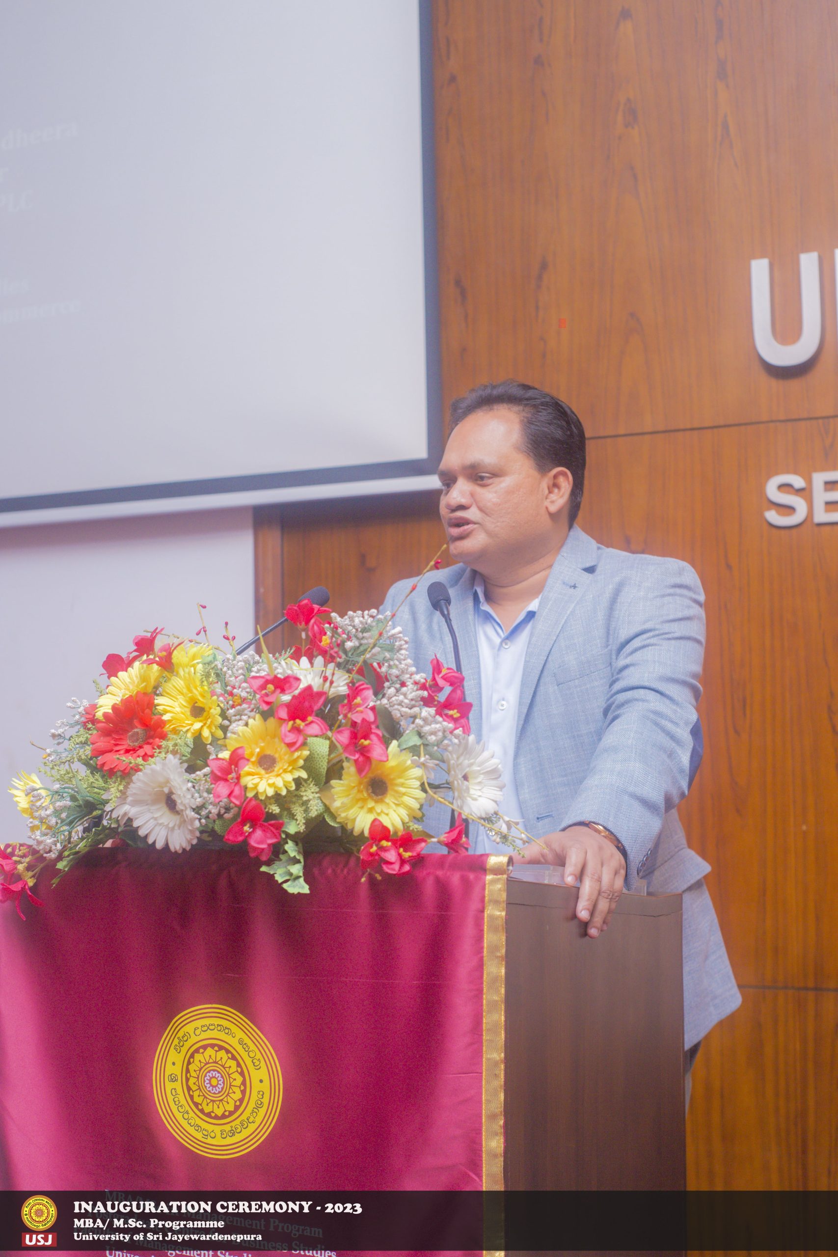 The Inauguration Ceremony of the MBA/M.Sc. in Management Programme 2023 was successfully held on February 19, 2023, at the Senate Boardroom of the University of Sri Jayewardenepura. The ceremony was led by Mr. Pushpika Janadeera, Managing Director of Dipped Products PLC and a proud J’pura MBA alumnus. He shared his experiences in the export market before, during, and after the COVID-19 pandemic, highlighting how his J’pura MBA expertise had fostered in his professional success. Prof. P.D. Nimal, Dean of the Faculty of Management Studies and Commerce, Prof. S.T.W. Saman Yapa, Chairman—of the Board of Studies in Management Studies, Prof. M.A.K. Sriyalatha, Coordinator—MBA Unit, and Ms. W.R.M. Shehani Shanika, Assistant Coordinator of the same Unit, graced the ceremony. Senior academics representing the lecture panel including Professor Aruna Shantha Gamage who was the former coordinator of the Unit also participated and added more colour to the ceremony. A total of 100 candidates participated in the inauguration ceremony, representing diversified professional backgrounds.