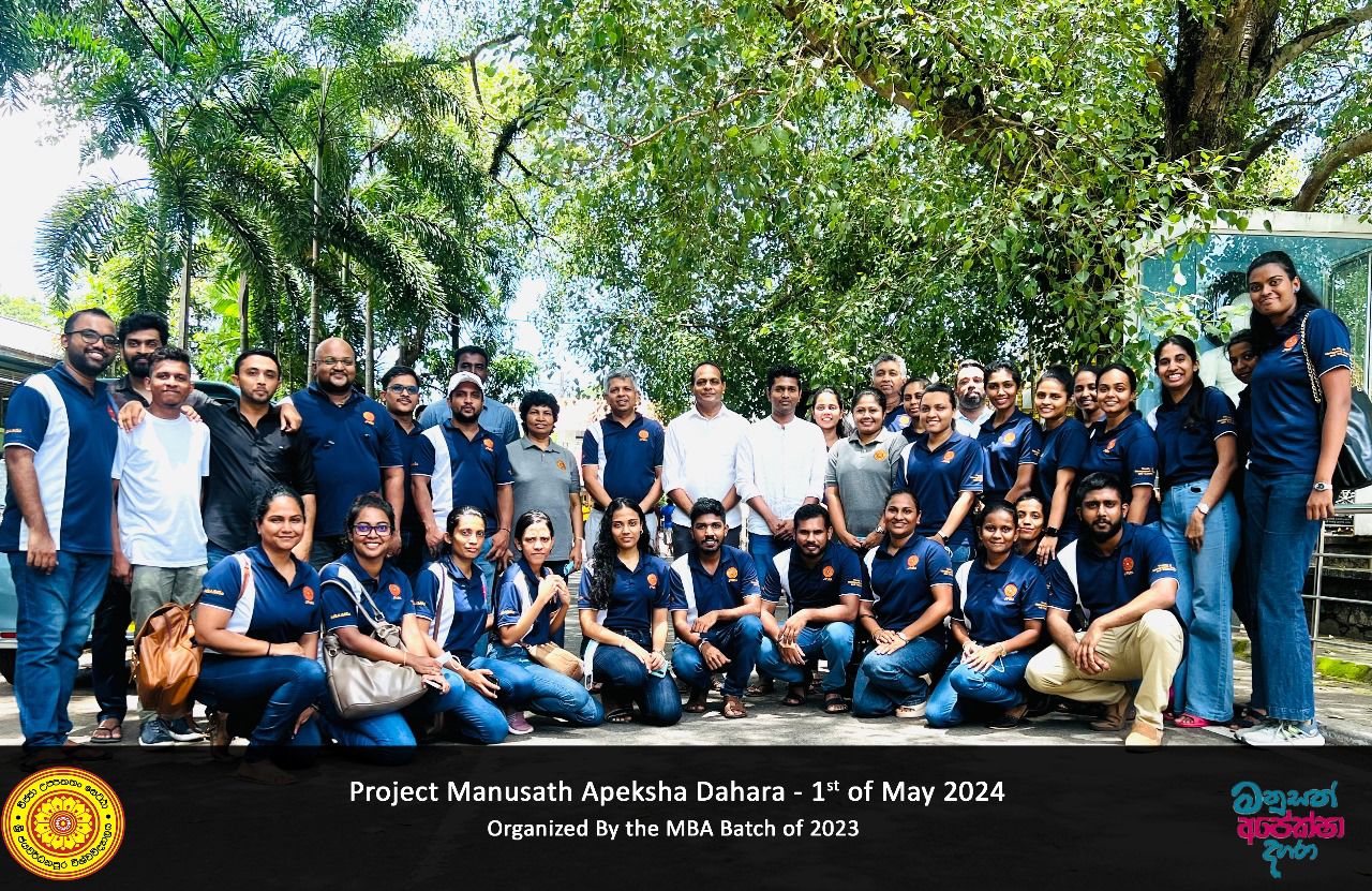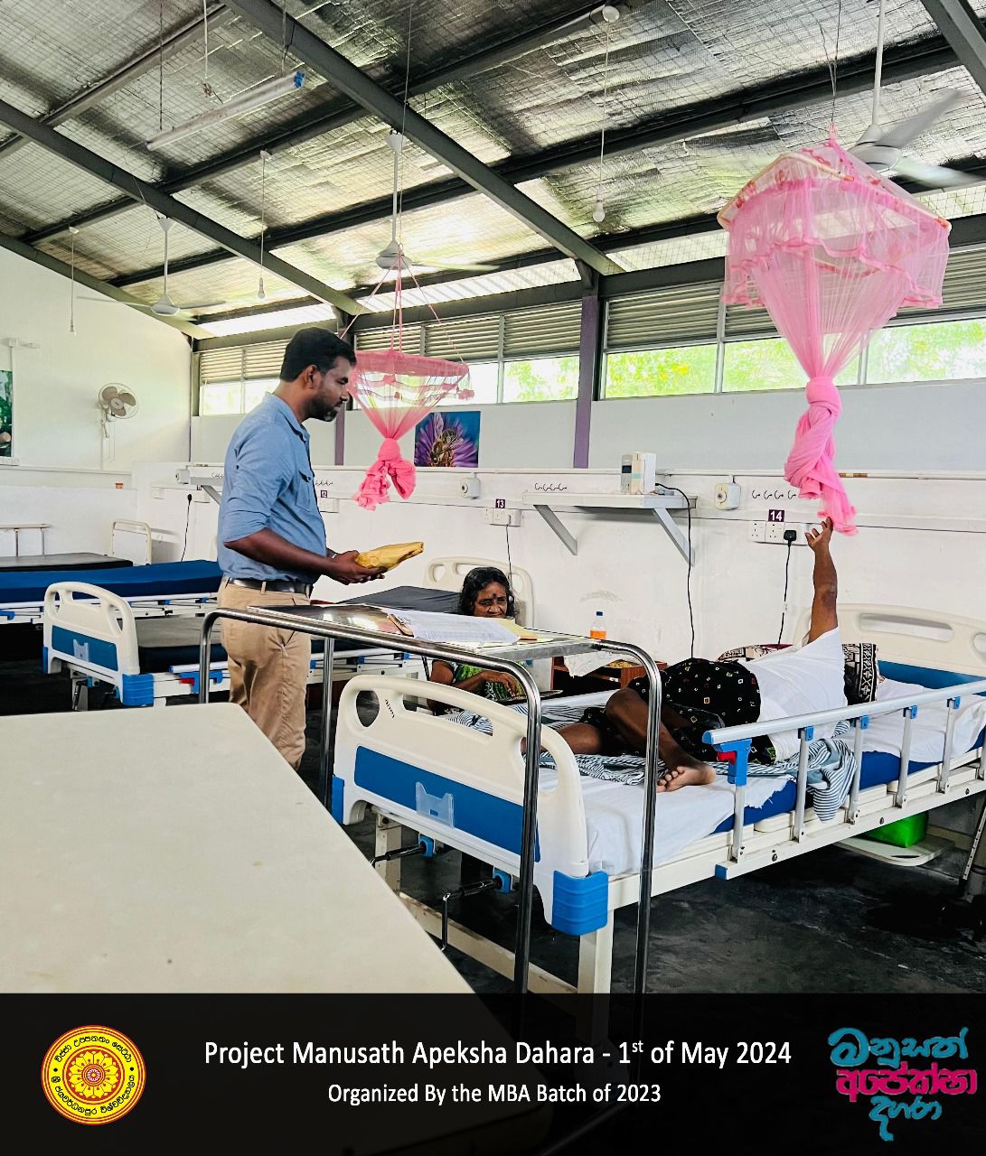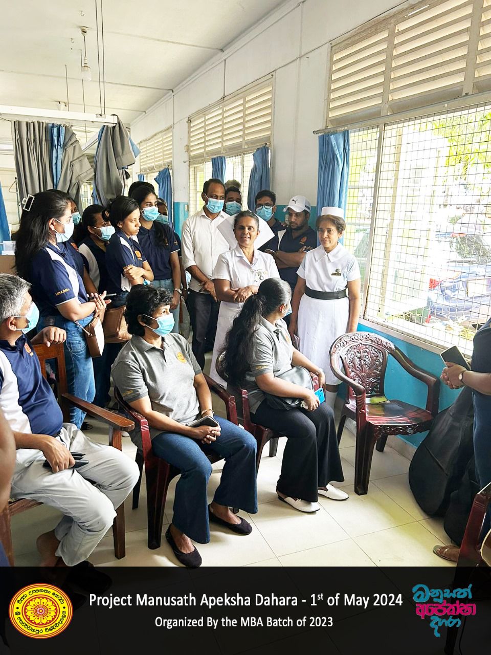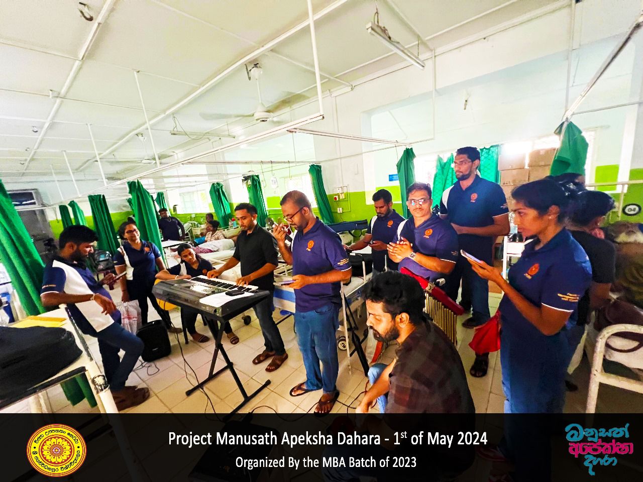 The Manusath Apeksha Dahara program, held on the 1st of May from 10 am to 5 pm at Apeksha Hospital Maharagama, epitomized a harmonious collaboration between the MBA batch of 2023 and Apeksha Hospital Maharagama. This initiative encompassed various facets, including a successful music therapy session, provision of requested items to the hospital, distribution of medications, and blood donation to the hospital’s blood bank. The seamless execution of the program owed much to the active involvement of distinguished lecturers from the esteemed Japura MBA/M.Sc. program. Among them were Dr. Dushan Jayawickrama, Dean of the Faculty of Management Studies and Commerce, Prof. Kumuduni Sriyalatha, Coordinator MBA/MSc in Management Program, Prof. Sudath M. Amarasena, Mr. Dilan Rathnayaka (Senior Lecturer), Ms. W. R. M. Shehani Shanika, Assistant Coordinator MBA/MSc in Management Program. Furthermore, the participation of J’pura Masters Alumni Association members and fellow batch mates added to the collective effort, fostering a sense of community and camaraderie. Through the Manusath Apeksha Dahara program, the MBA batch of 2023, alongside Apeksha Hospital Maharagama, demonstrated a commitment to holistic healthcare and social responsibility, leaving a positive impact on both the institution and the broader community.