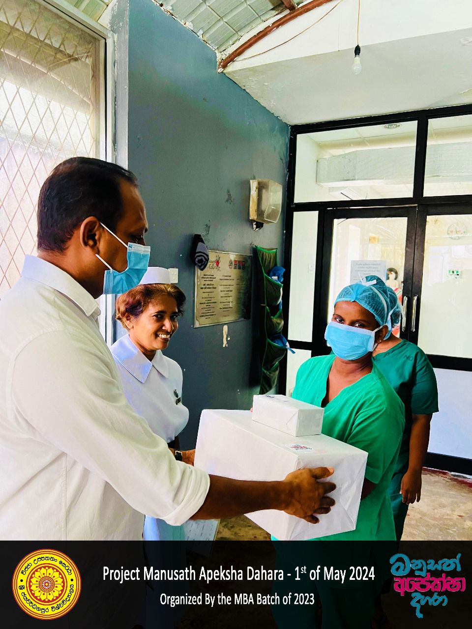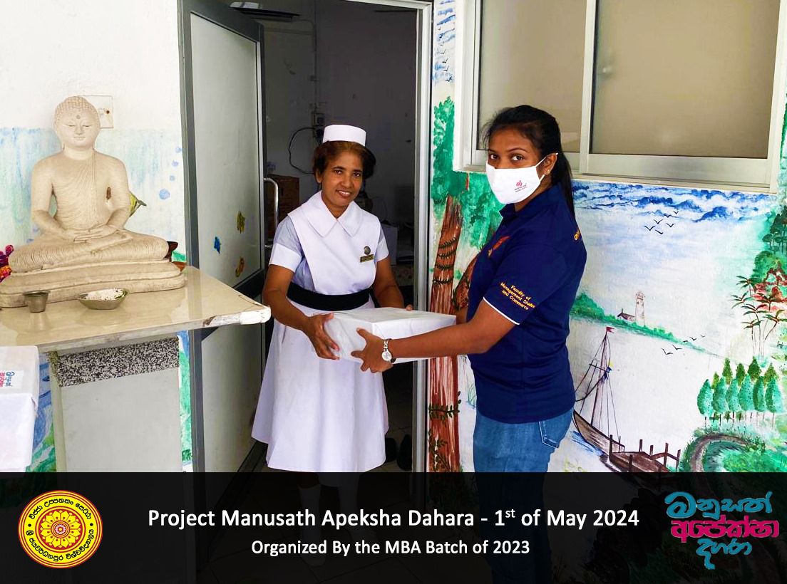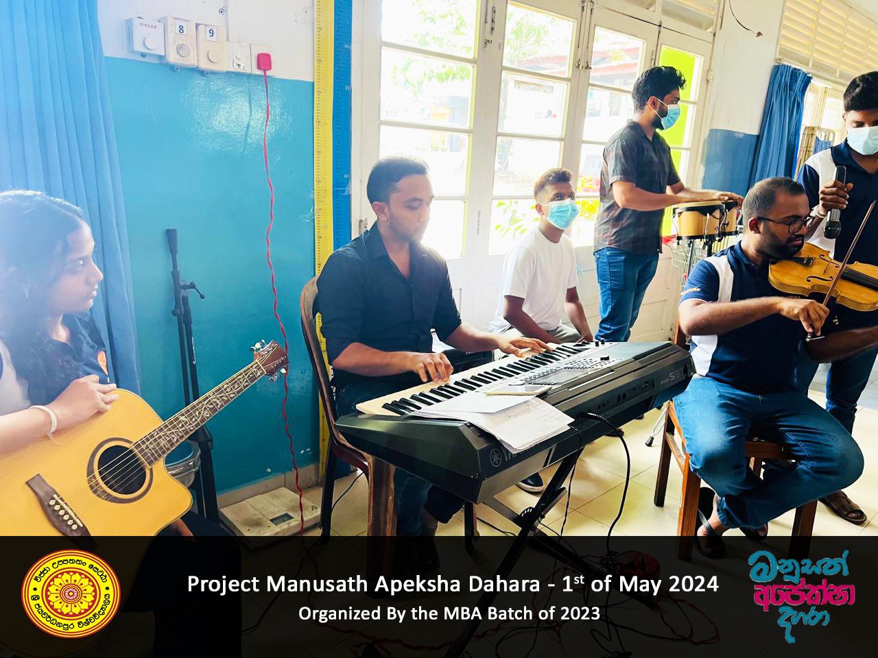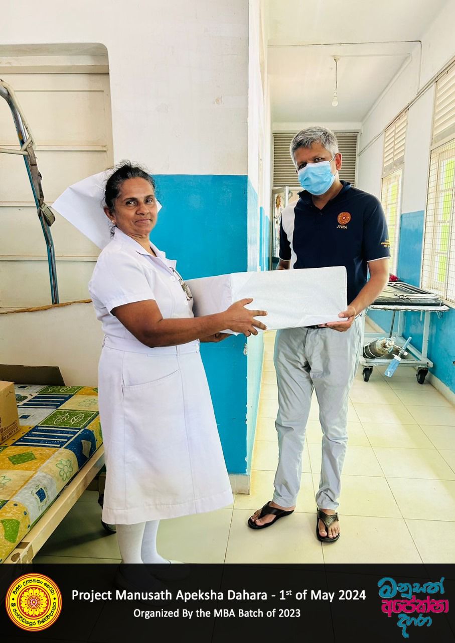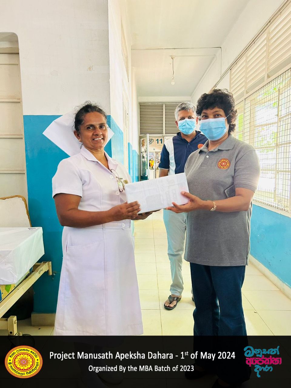 The Manusath Apeksha Dahara program, held on the 1st of May from 10 am to 5 pm at Apeksha Hospital Maharagama, epitomized a harmonious collaboration between the MBA batch of 2023 and Apeksha Hospital Maharagama. This initiative encompassed various facets, including a successful music therapy session, provision of requested items to the hospital, distribution of medications, and blood donation to the hospital’s blood bank. The seamless execution of the program owed much to the active involvement of distinguished lecturers from the esteemed Japura MBA/M.Sc. program. Among them were Dr. Dushan Jayawickrama, Dean of the Faculty of Management Studies and Commerce, Prof. Kumuduni Sriyalatha, Coordinator MBA/MSc in Management Program, Prof. Sudath M. Amarasena, Mr. Dilan Rathnayaka (Senior Lecturer), Ms. W. R. M. Shehani Shanika, Assistant Coordinator MBA/MSc in Management Program. Furthermore, the participation of J’pura Masters Alumni Association members and fellow batch mates added to the collective effort, fostering a sense of community and camaraderie. Through the Manusath Apeksha Dahara program, the MBA batch of 2023, alongside Apeksha Hospital Maharagama, demonstrated a commitment to holistic healthcare and social responsibility, leaving a positive impact on both the institution and the broader community.