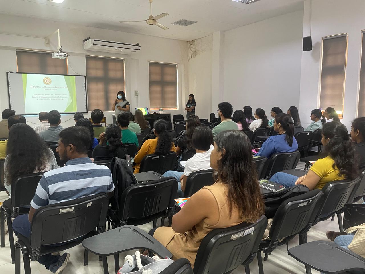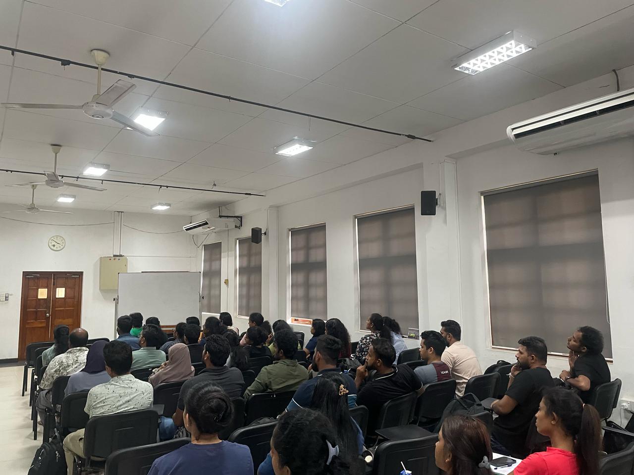 A special session titled “Mindfulness for Postgraduate Students” was conducted on 14th December by Dr. Kalharie Pitigala, Child adolescent, and Counseling Psychologist at Asiri Hospitals and Wellness Consultant at MAS Intimates, together with Mr. A. L. Lalith, Psychological Counsellor at Vida Healthcare Services and Visiting Counsellor at MAS Intimates. The session was highly insightful and inspiring, providing postgraduate students with a clear and meaningful understanding of mindfulness. The knowledge gained is expected to enhance their academic performance while also positively contributing to their personal well-being and everyday lives.