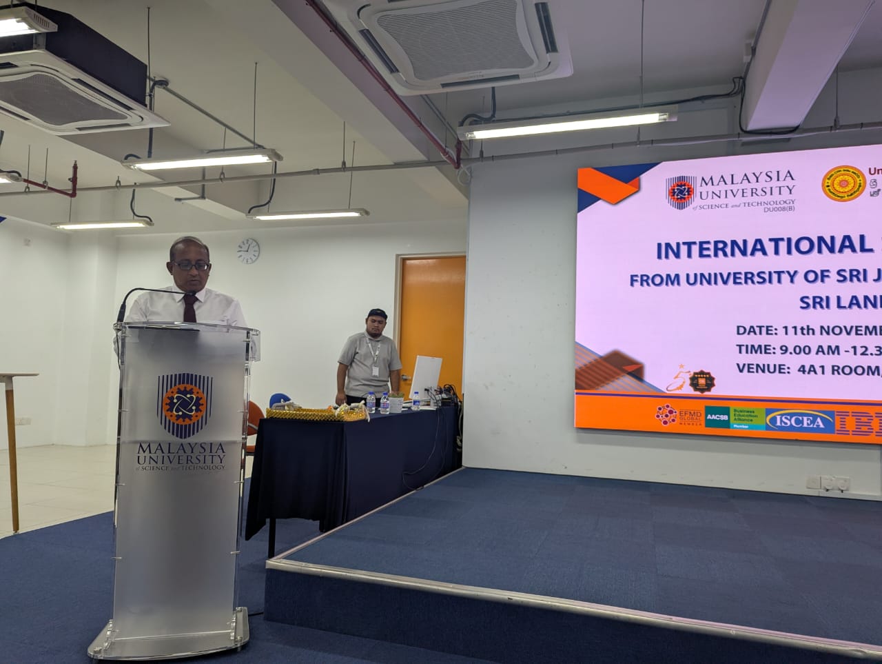 While being in Malaysia students visited the Malaysian University of Science and Technology (MUST) with the intention of developing partnerships between the two universities. The university visit included two interactive sessions conducted by MUST academic staff: a session on Supply Chain Sustainability delivered by Prof. Dr. Premkumar Rajagopal, President of MUST, and a session on Artificial Intelligence in Higher Education conducted by Assoc. Prof. Dr. Khashayar Yazdani. Both sessions were meaningful and thought-provoking, offering valuable insights that served as an eye-opener for postgraduate students, encouraging them to consider emerging research areas and the responsible use of artificial intelligence tools in their studies and research. Further, discussions were held to recognize the possibilities of conducting collaborative research, teaching and potential opportunities for transnational education programmes between two universities for future postgraduate students. Dr. Thanga Thurai Vengadasalam, Director of the Global Engagement Office at MUST, was instrumental in organizing the university visit, and the relevant discussions were held with his presence.